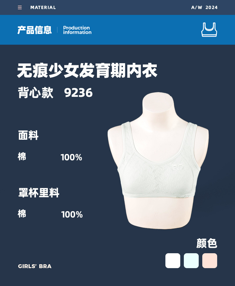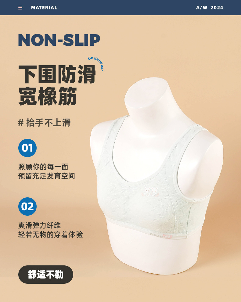 고정 삼각 컵 발달 기간 속옷 2단계 중학생 스포츠 조끼 가볍고 통기성이 좋은 소녀 브라