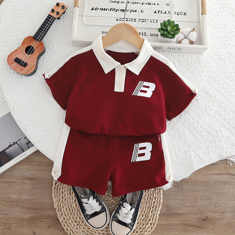 소년 스포츠 반팔 정장 2025 여름 새로운 스타일 1-5 세 어린이 투피스 세트 1-5 세 소년 의류