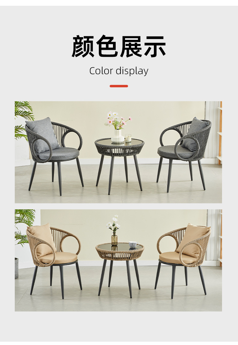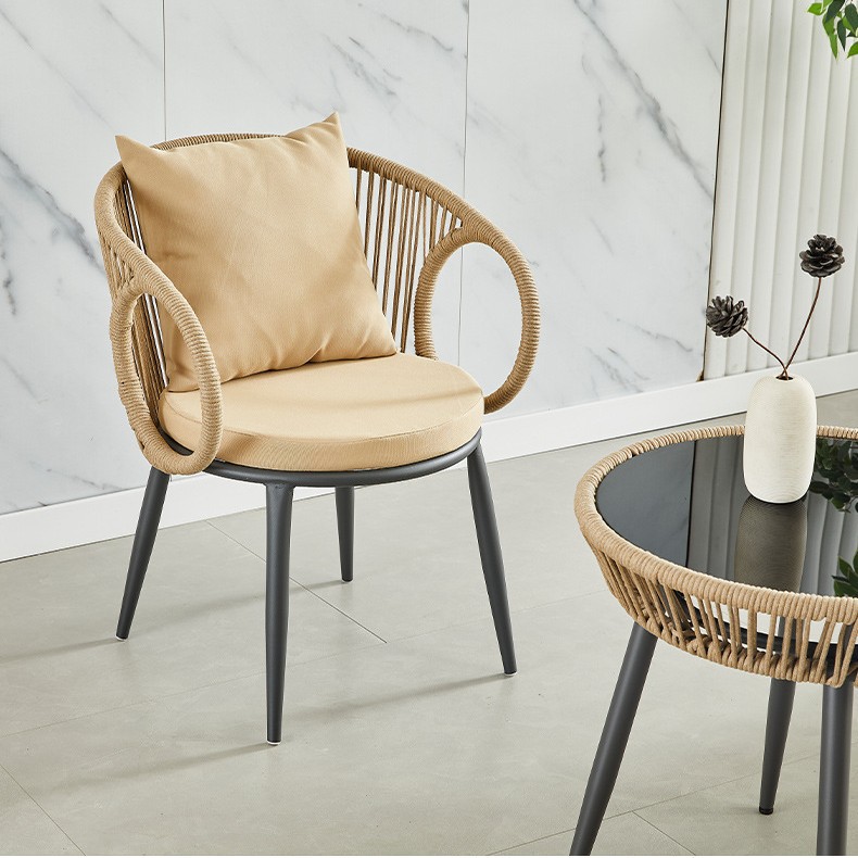 공장 도매 야외 등나무 의자 레저 발코니 호텔 B&B 안뜰 테라스 외부 식탁과 의자 등받이 등나무 의자