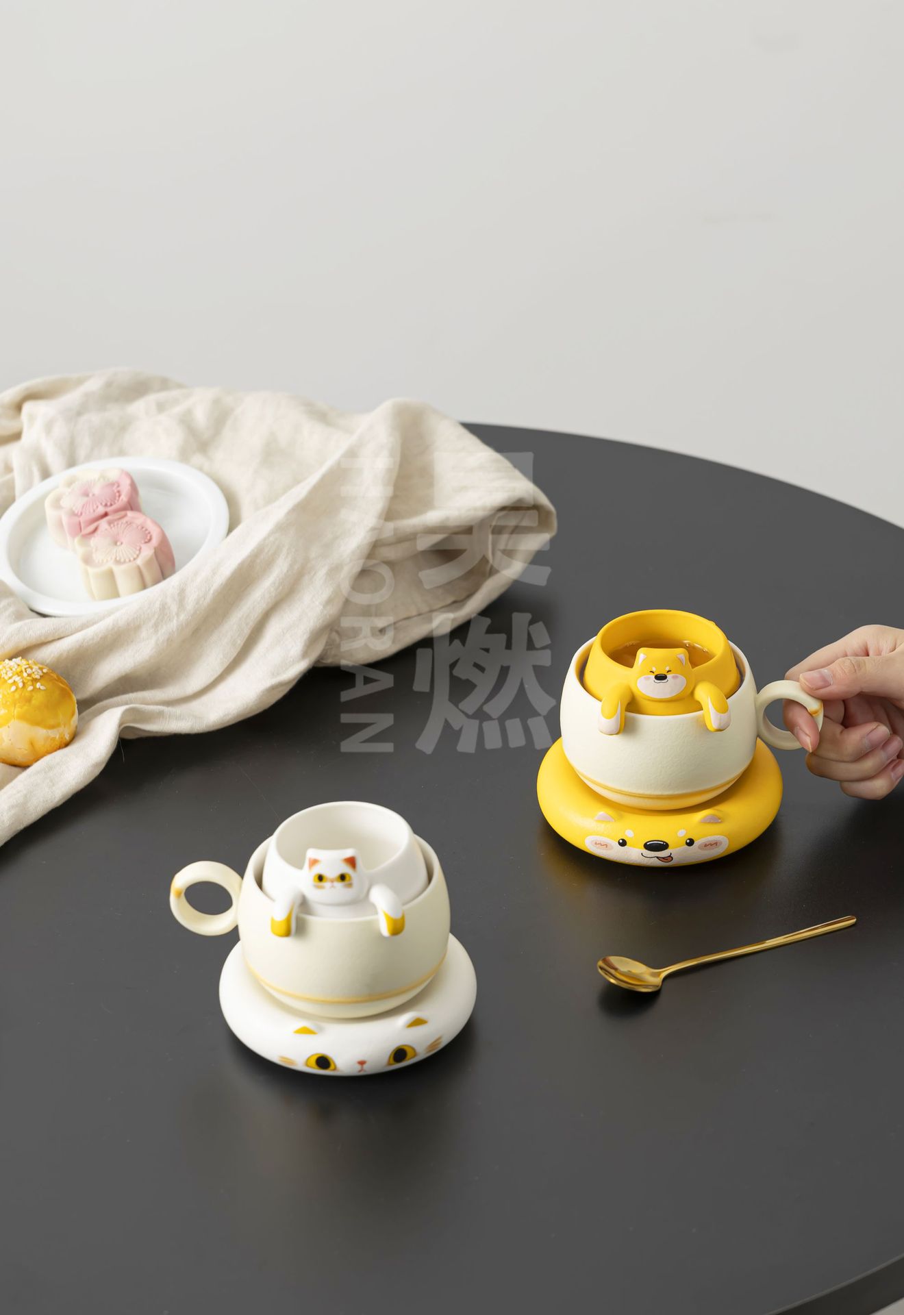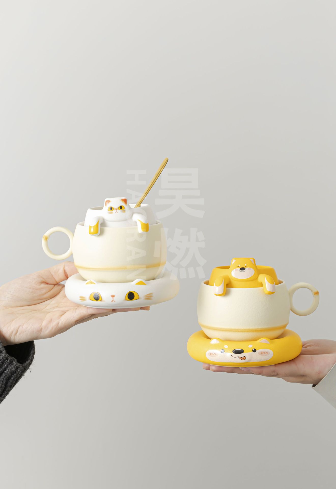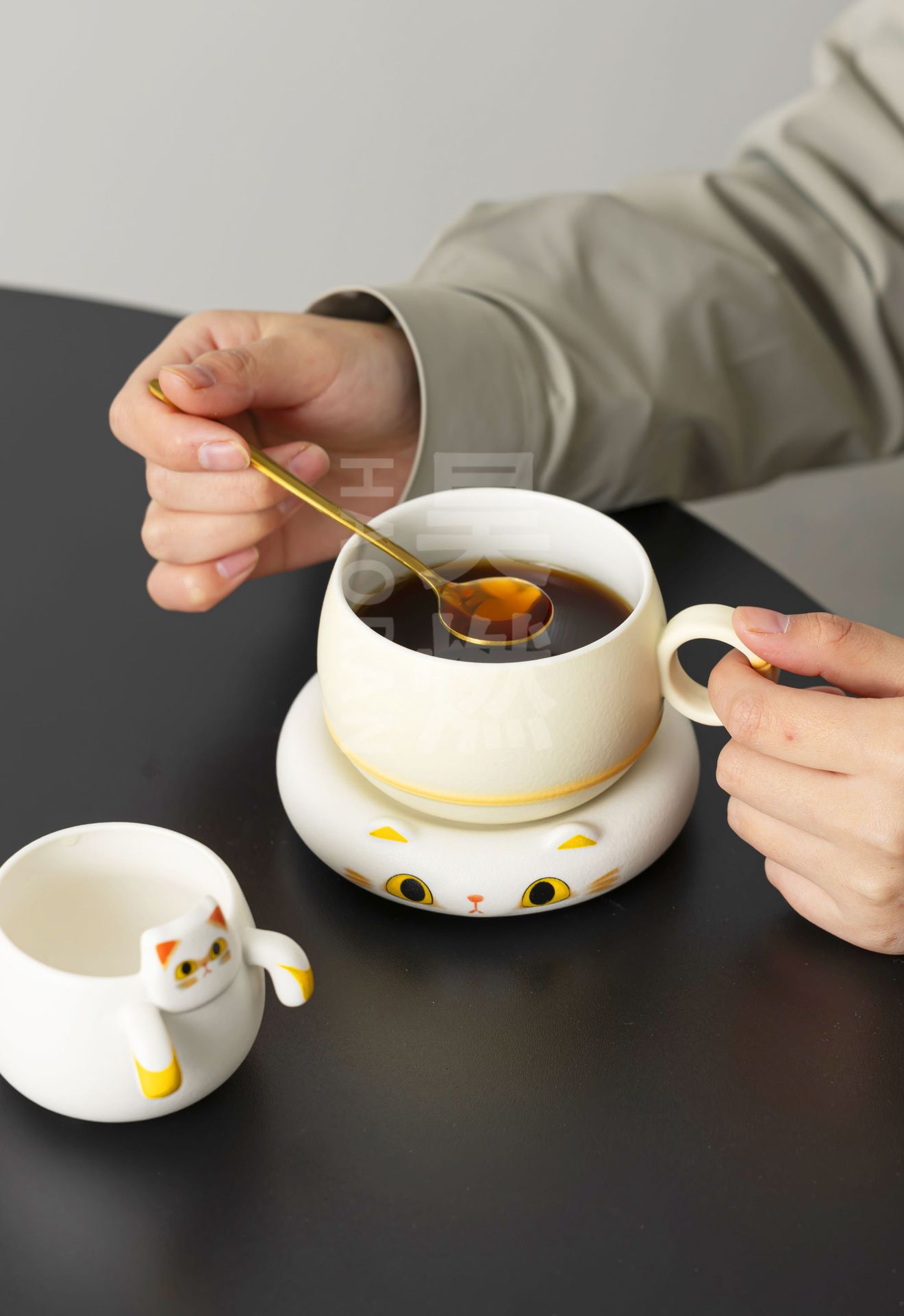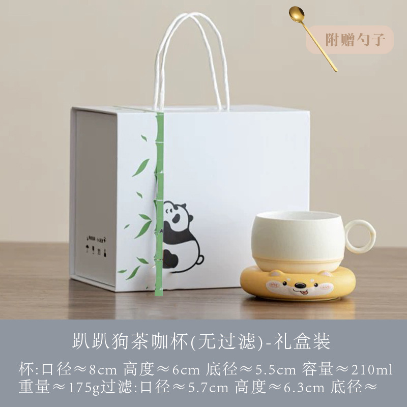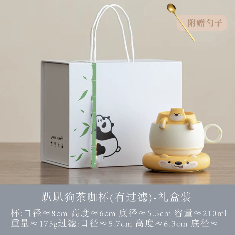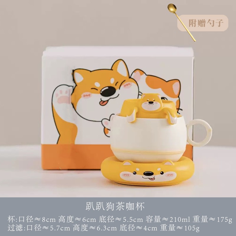 Haoran 귀여운 고양이 차 커피 컵 차 물 분리 컵 개인 세라믹 필터 워터 컵 차 커피 컵