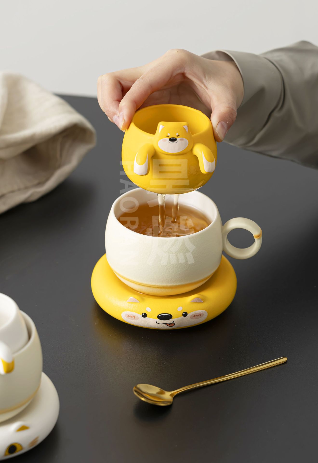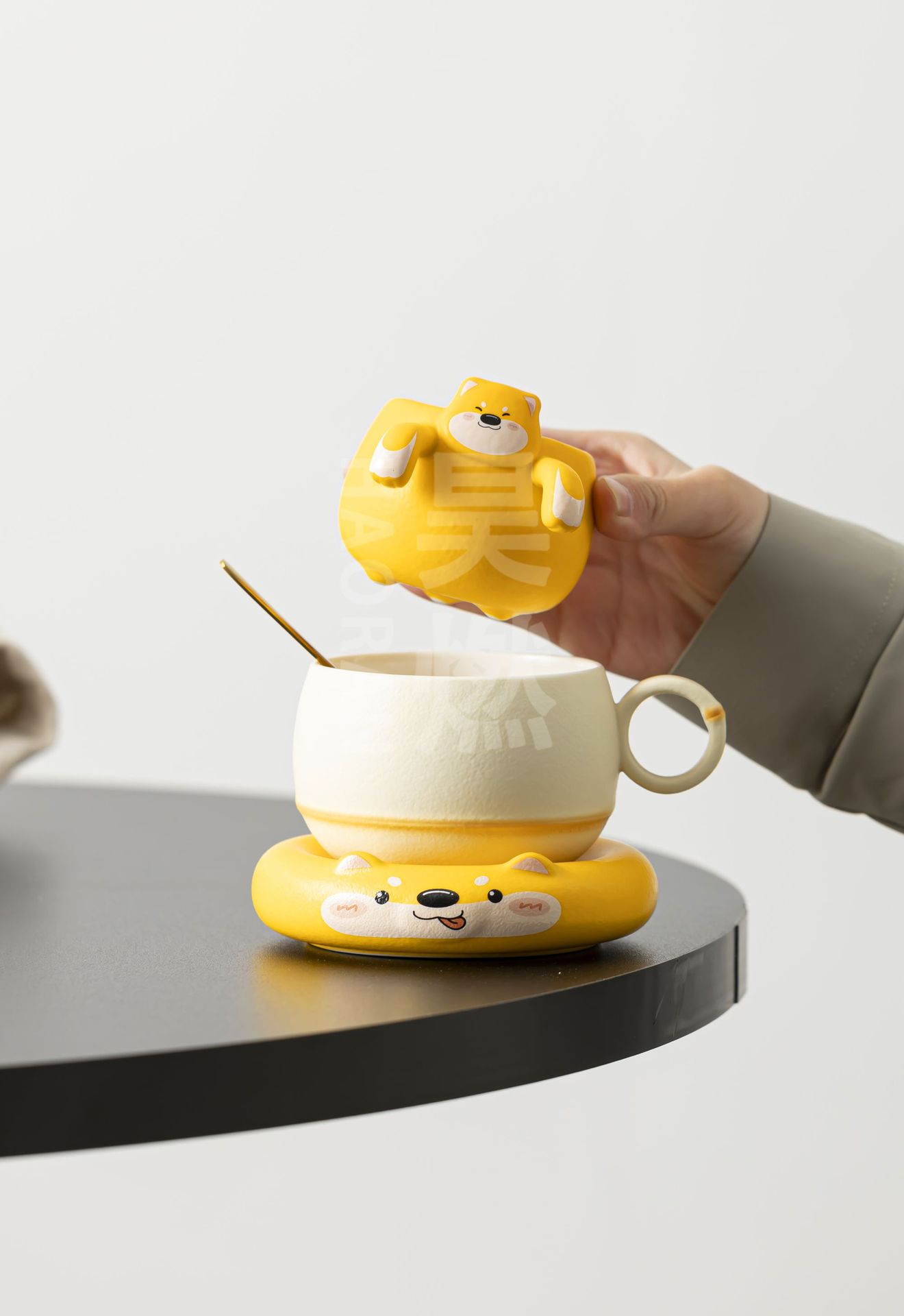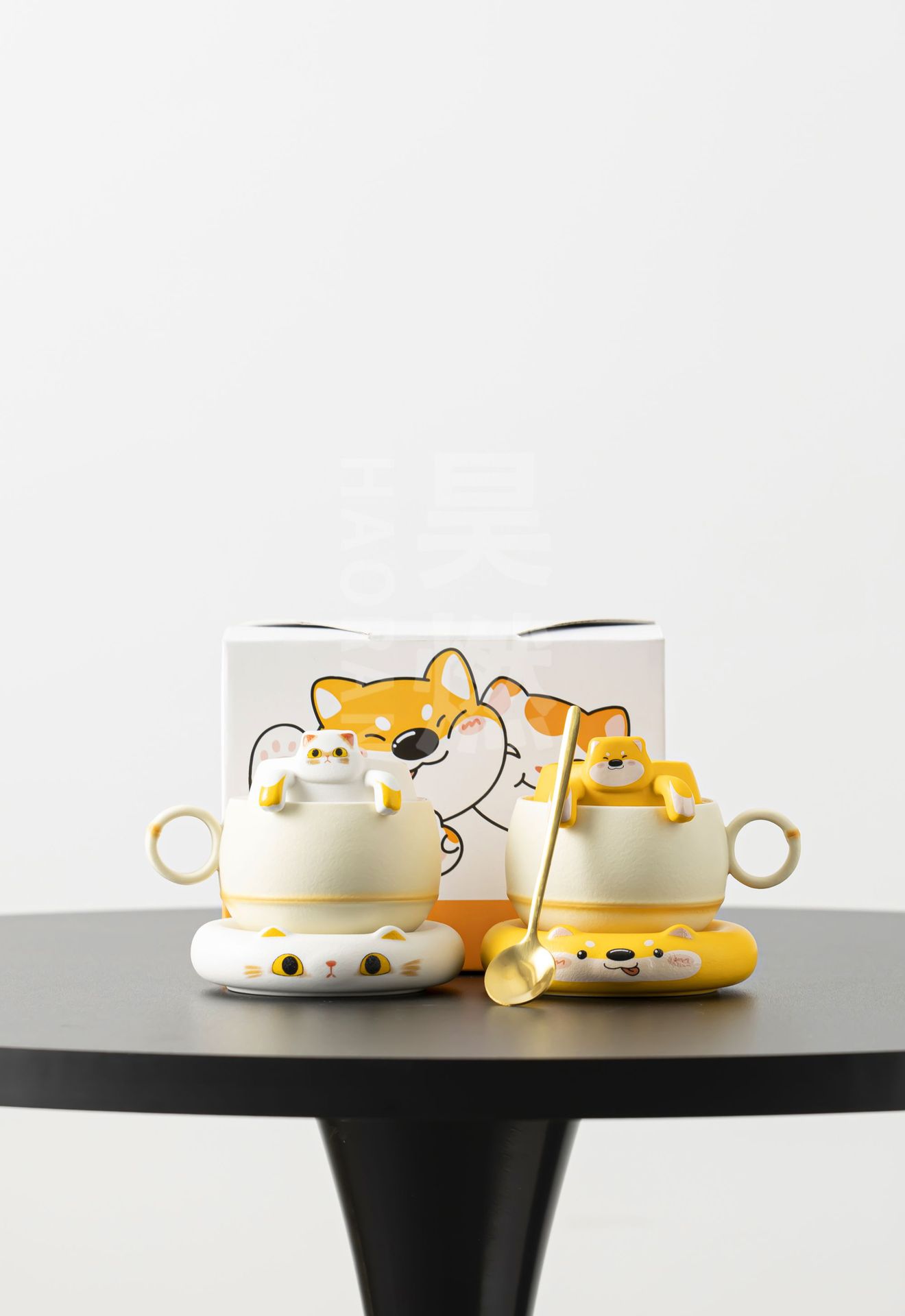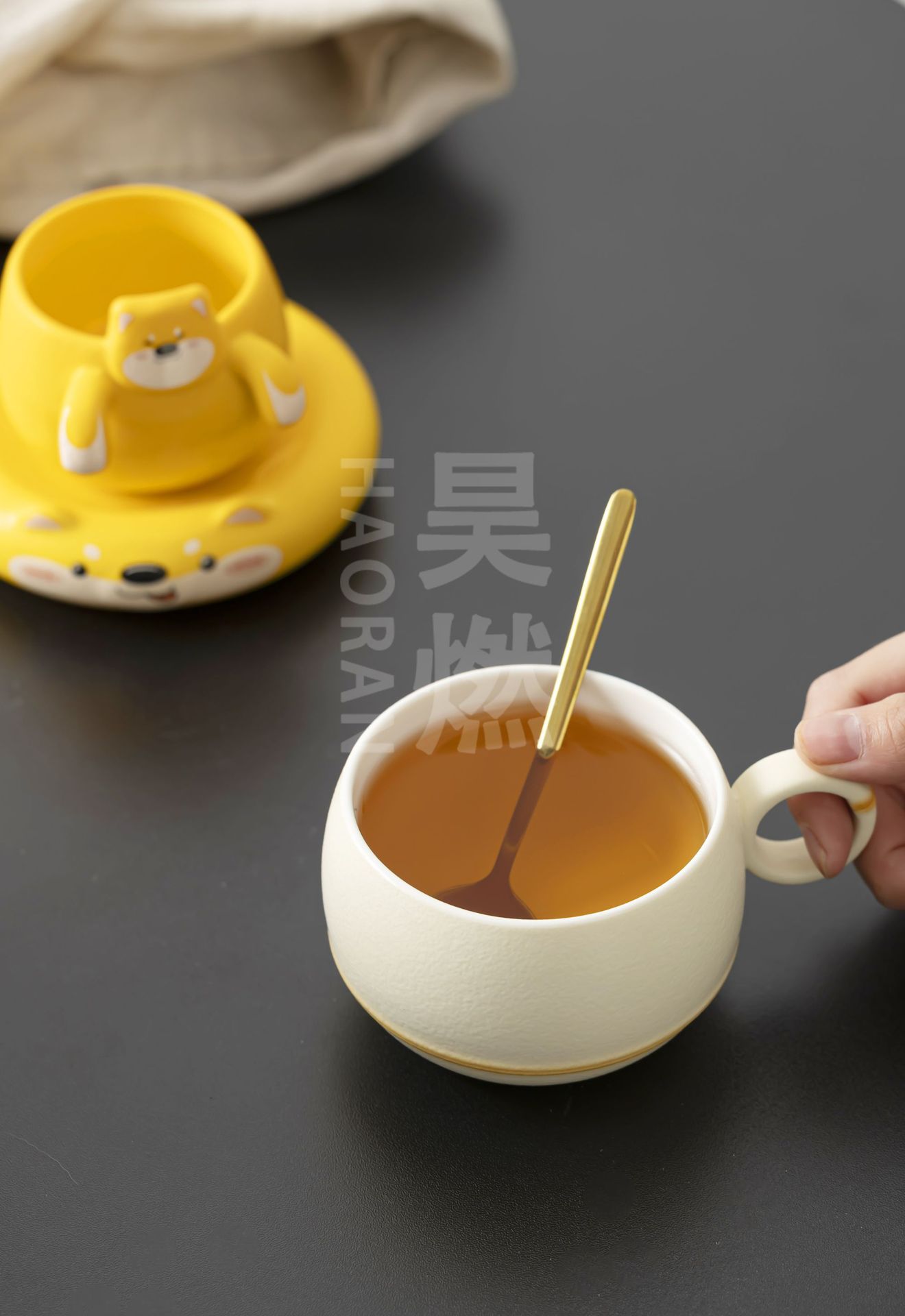 Haoran 귀여운 고양이 차 커피 컵 차 물 분리 컵 개인 세라믹 필터 워터 컵 차 커피 컵