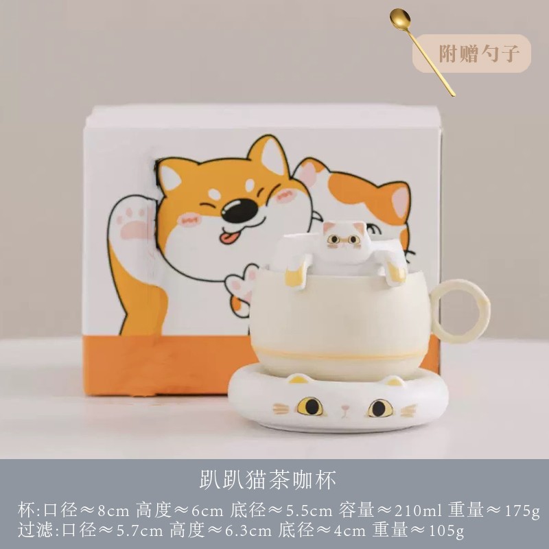 Haoran 귀여운 고양이 차 커피 컵 차 물 분리 컵 개인 세라믹 필터 워터 컵 차 커피 컵스토어 가기