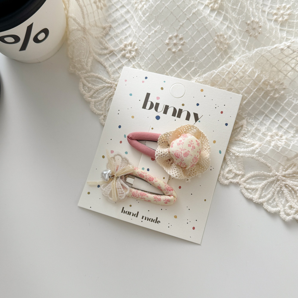 봄 꽃 레이스 활 헤어 핀 진주 사랑 BB 클립 달콤한 귀여운 어린이 헤어 액세서리 Bangs 사이드 클립
