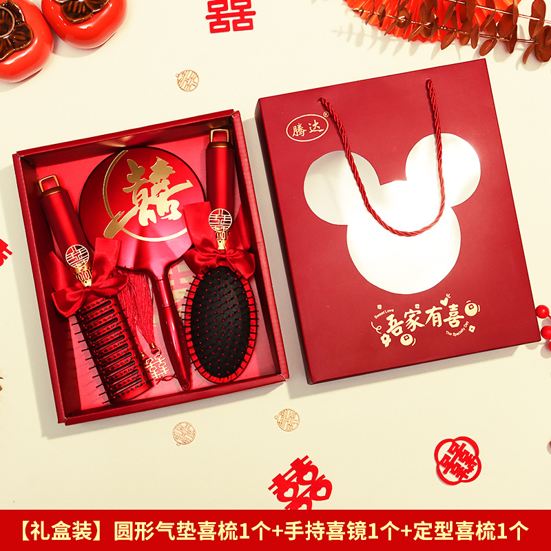 • 囍:둥근 에어쿠션 빗 + 손잡이 거울 + 선물 상자