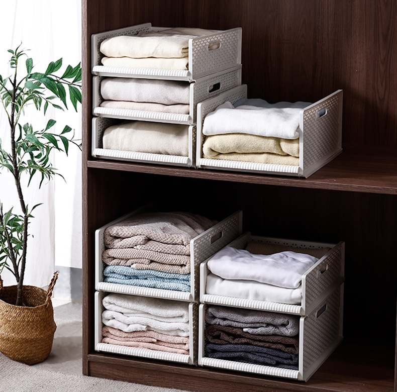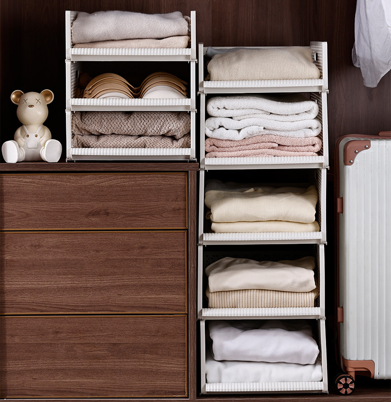 옷 보관 상자 서랍 형 플라스틱 보관 랙 옷장 보관 계층화 된 다층 풀아웃 접이식 옷 접는 유물