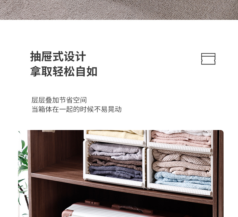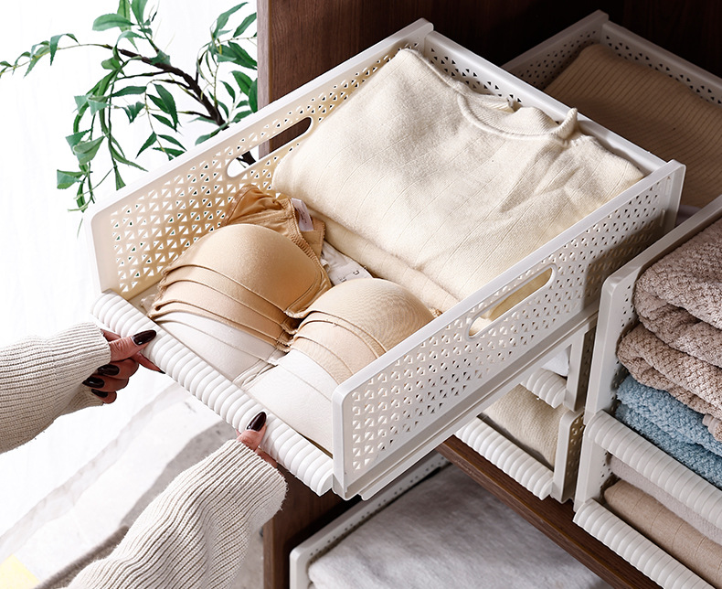 옷 보관 상자 서랍 형 플라스틱 보관 랙 옷장 보관 계층화 된 다층 풀아웃 접이식 옷 접는 유물스토어 가기