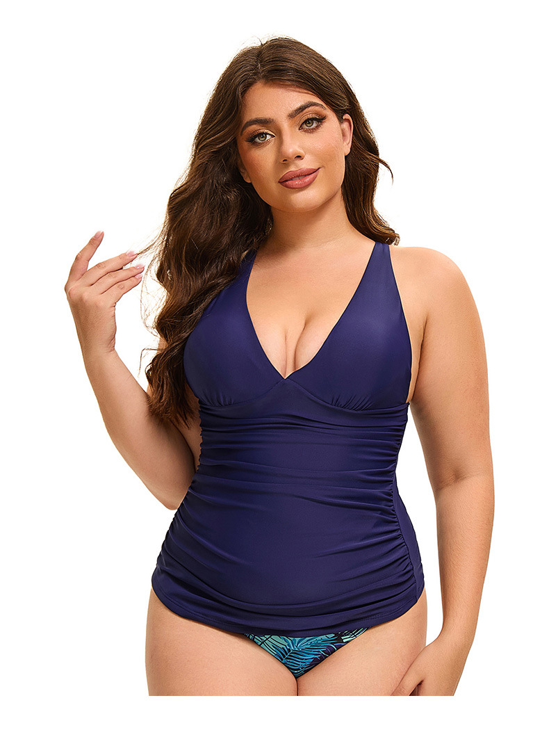 대외 무역 유럽과 미국의 민소매 삼각형 대형 수영복 여성용 국경 간 새로운 섹시한 등이없는 꽉 끼는 배를 덮는 스플릿 수영복