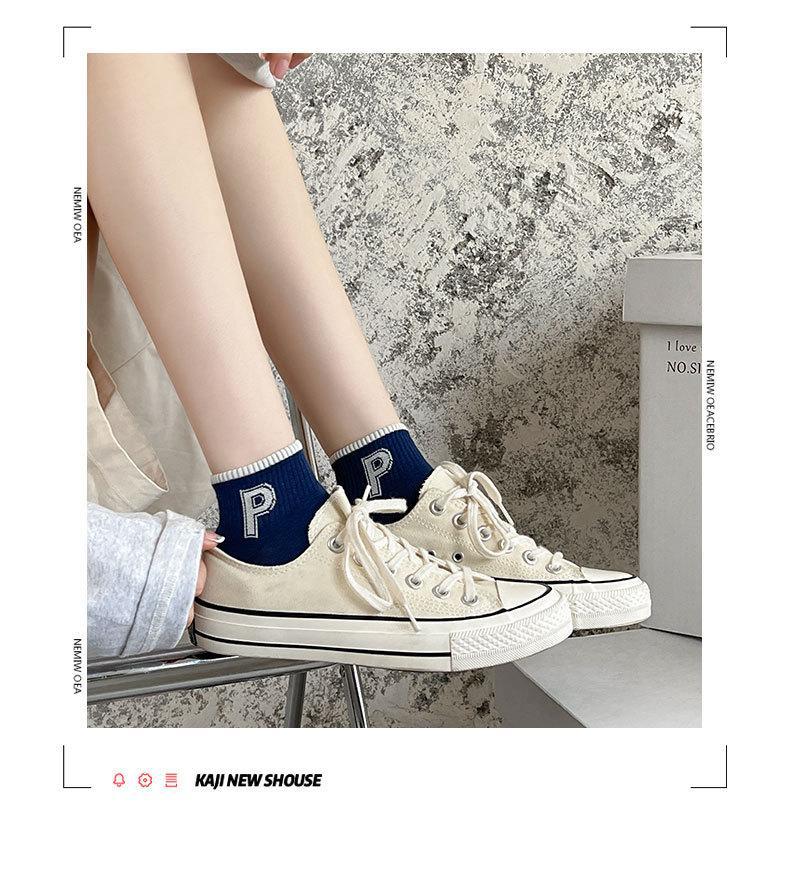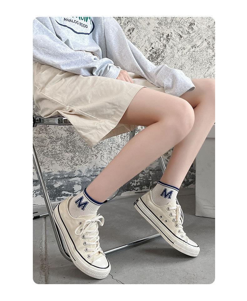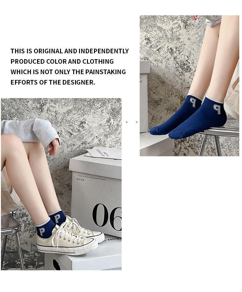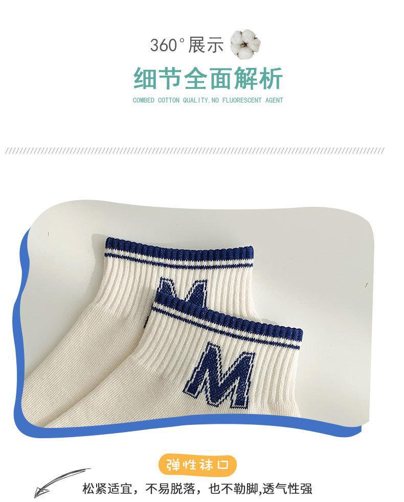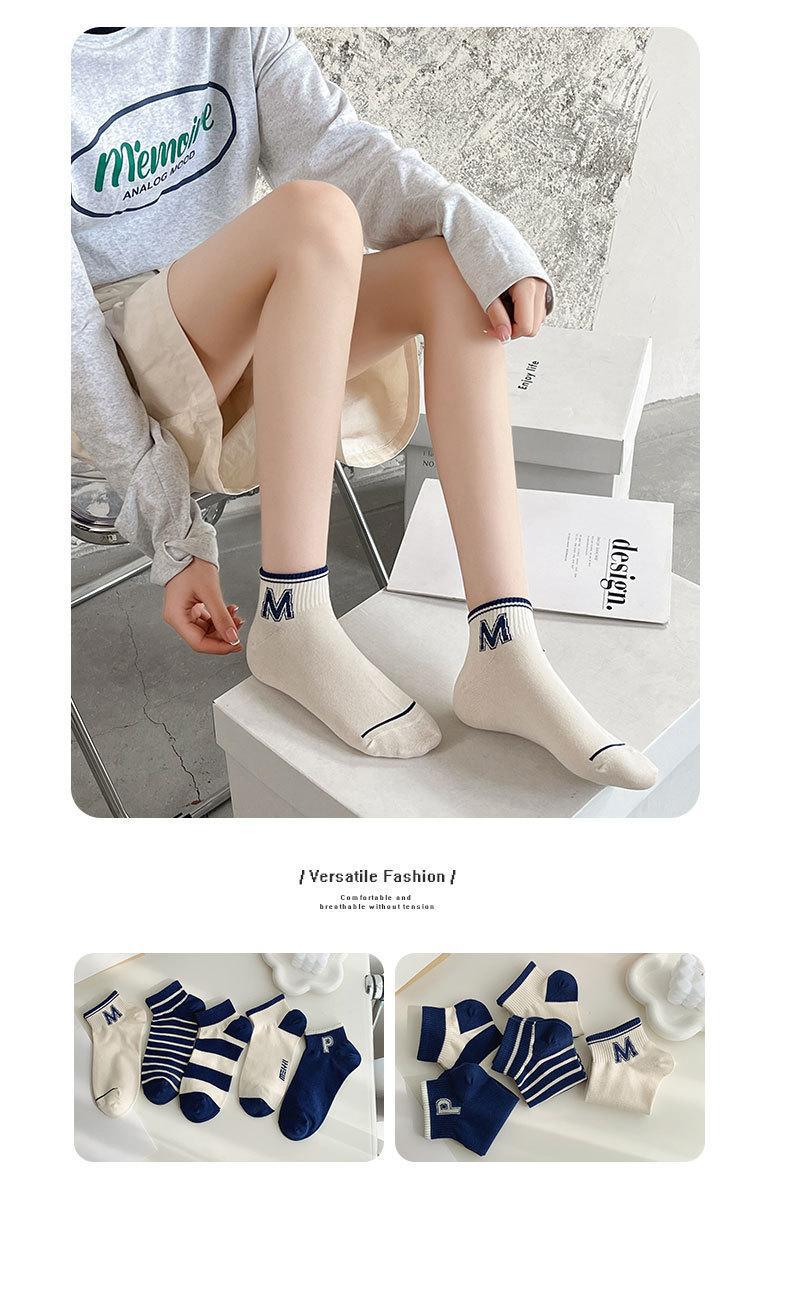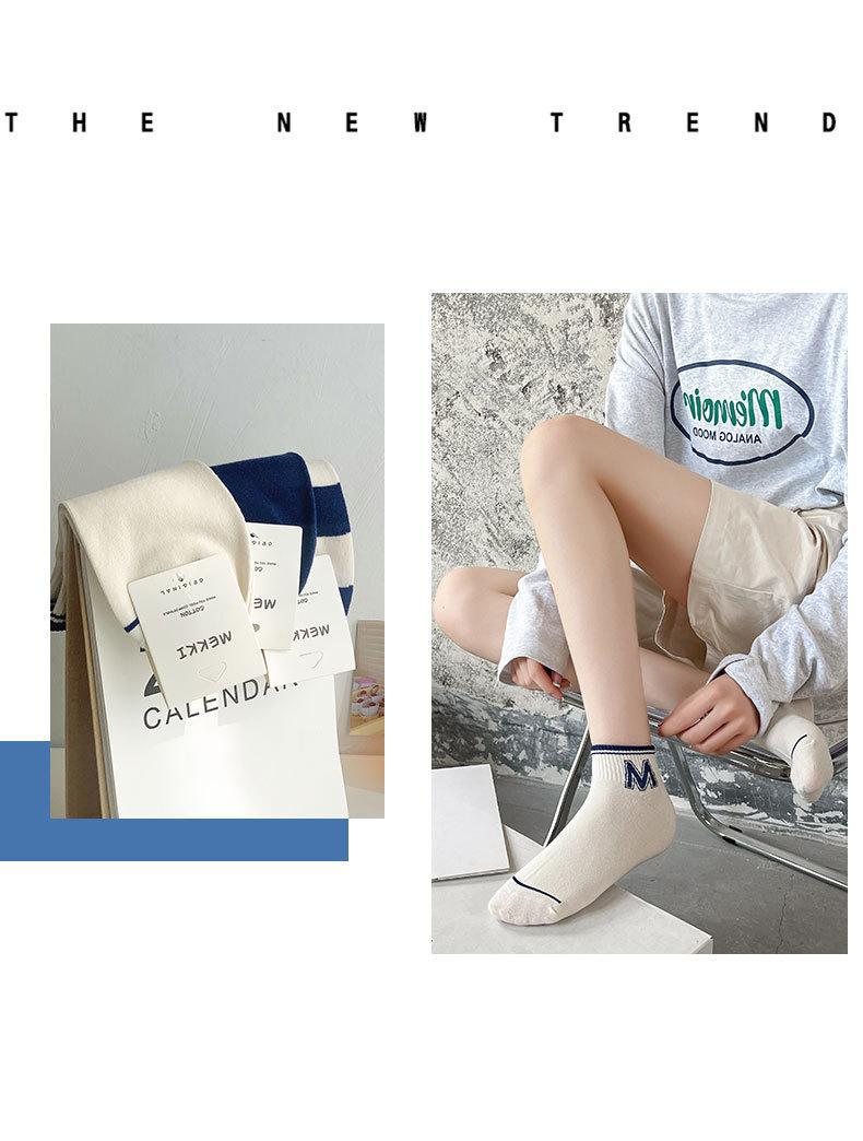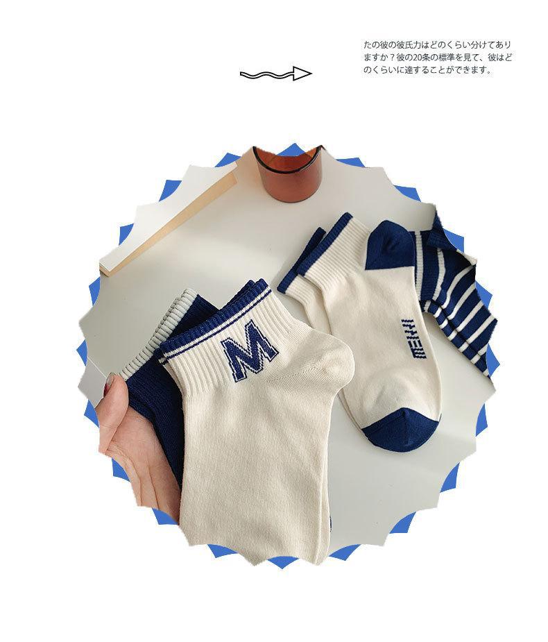 양말 남성용 양말 트렌디 브랜드 ins 네이비 다크 블루 스트라이프 양말 대학 스타일 레터 보트 양말 스포츠 양말스토어 가기
