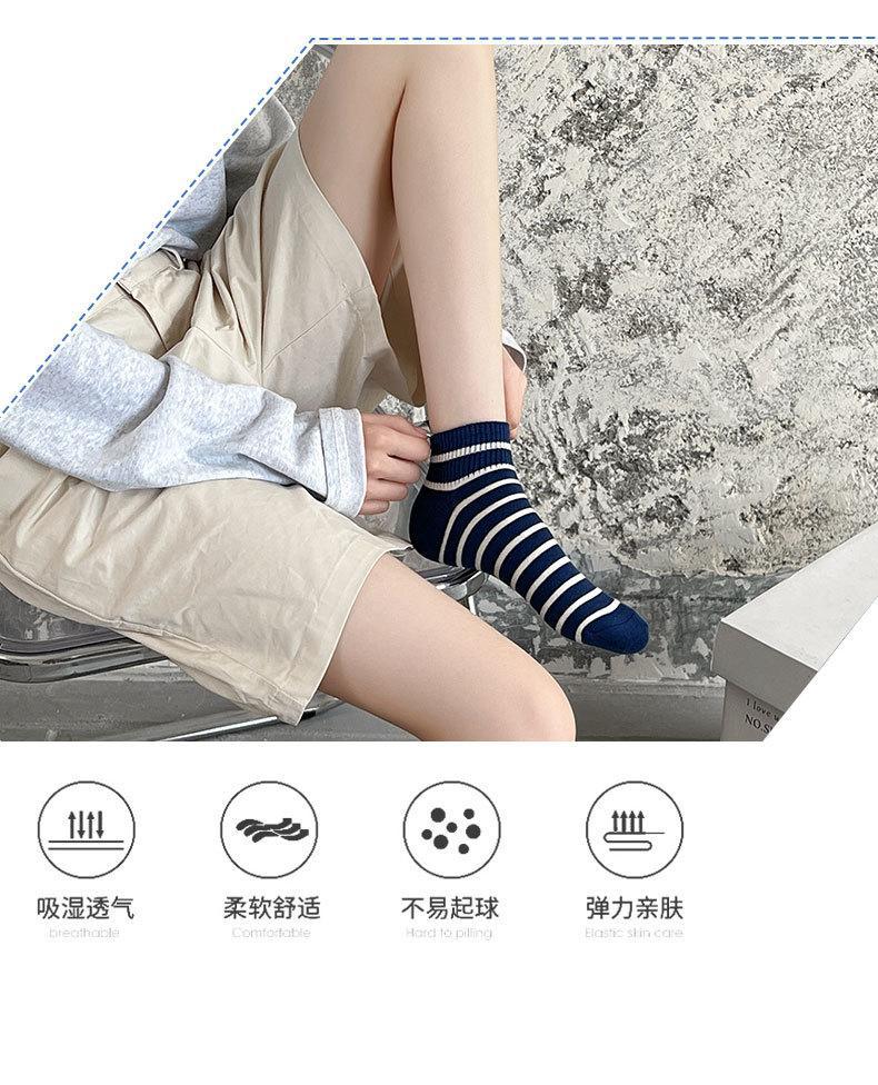 양말 남성용 양말 트렌디 브랜드 ins 네이비 다크 블루 스트라이프 양말 대학 스타일 레터 보트 양말 스포츠 양말