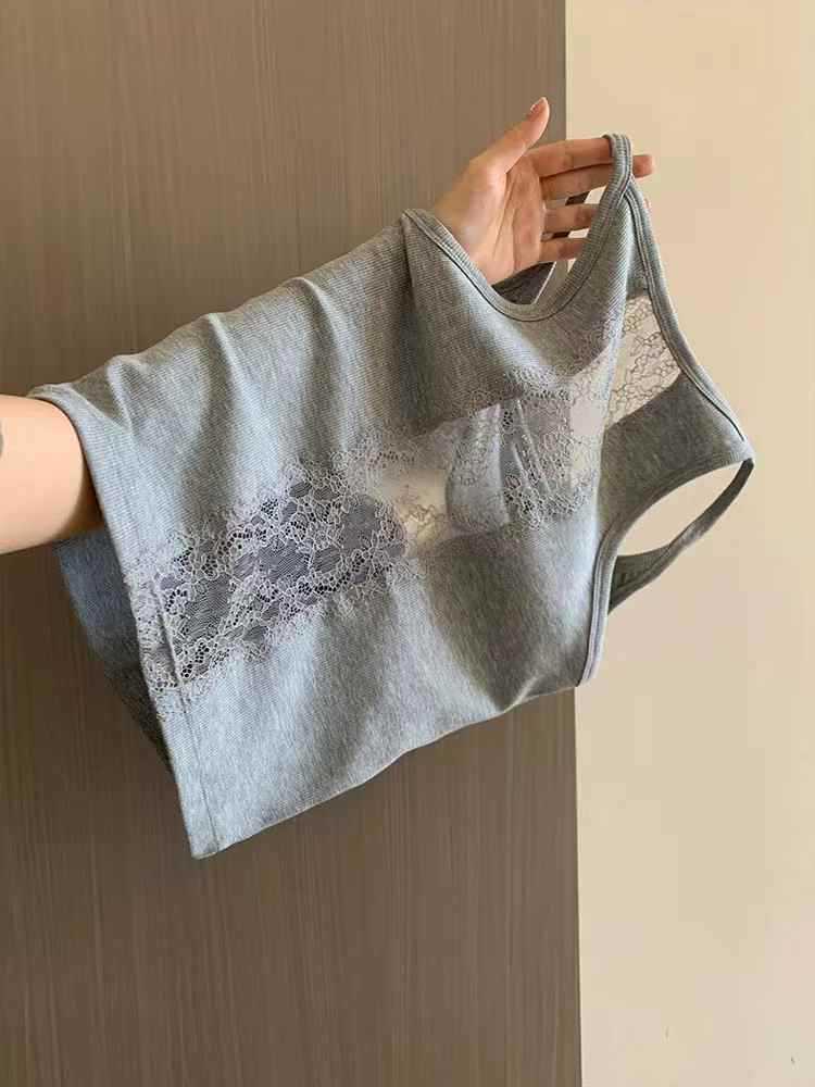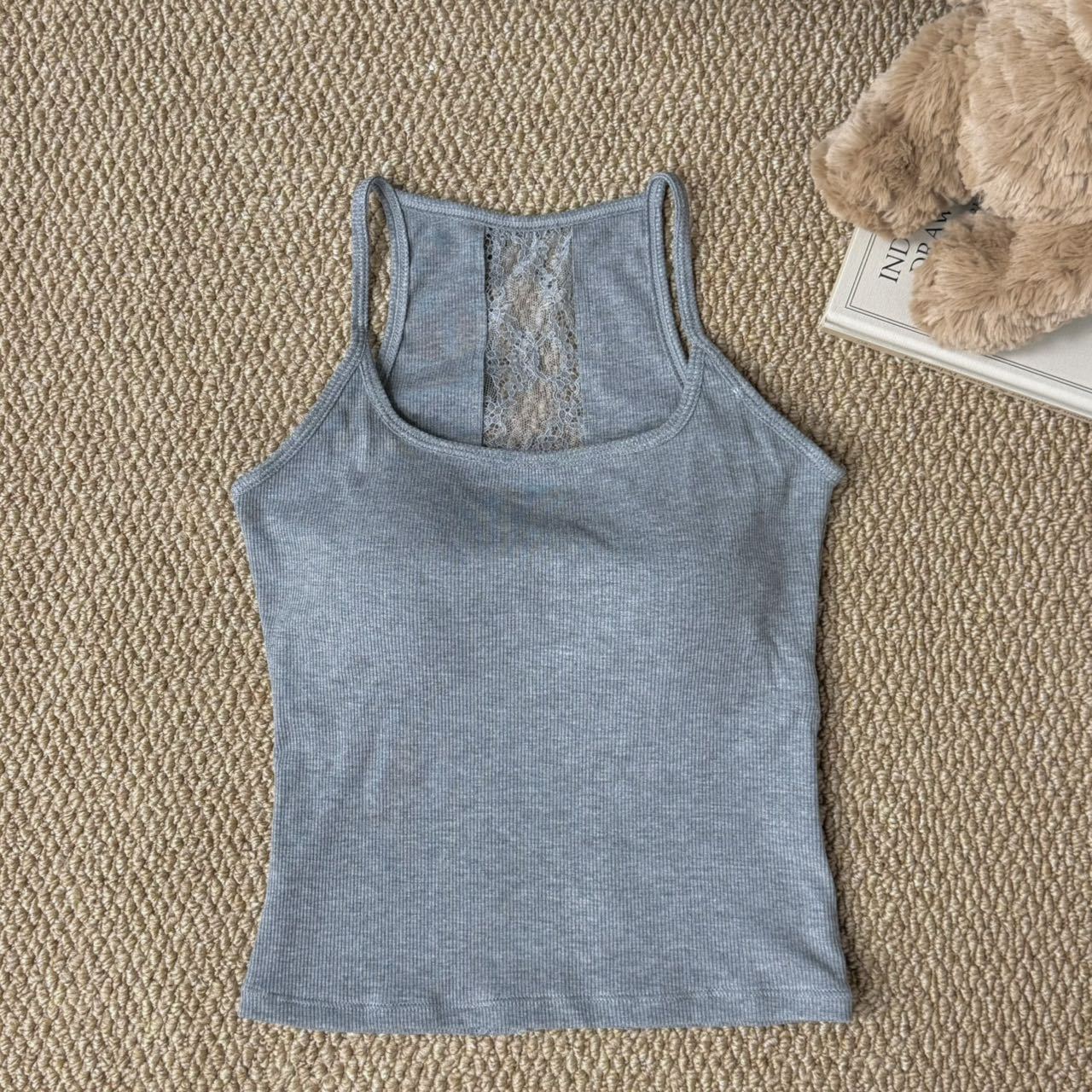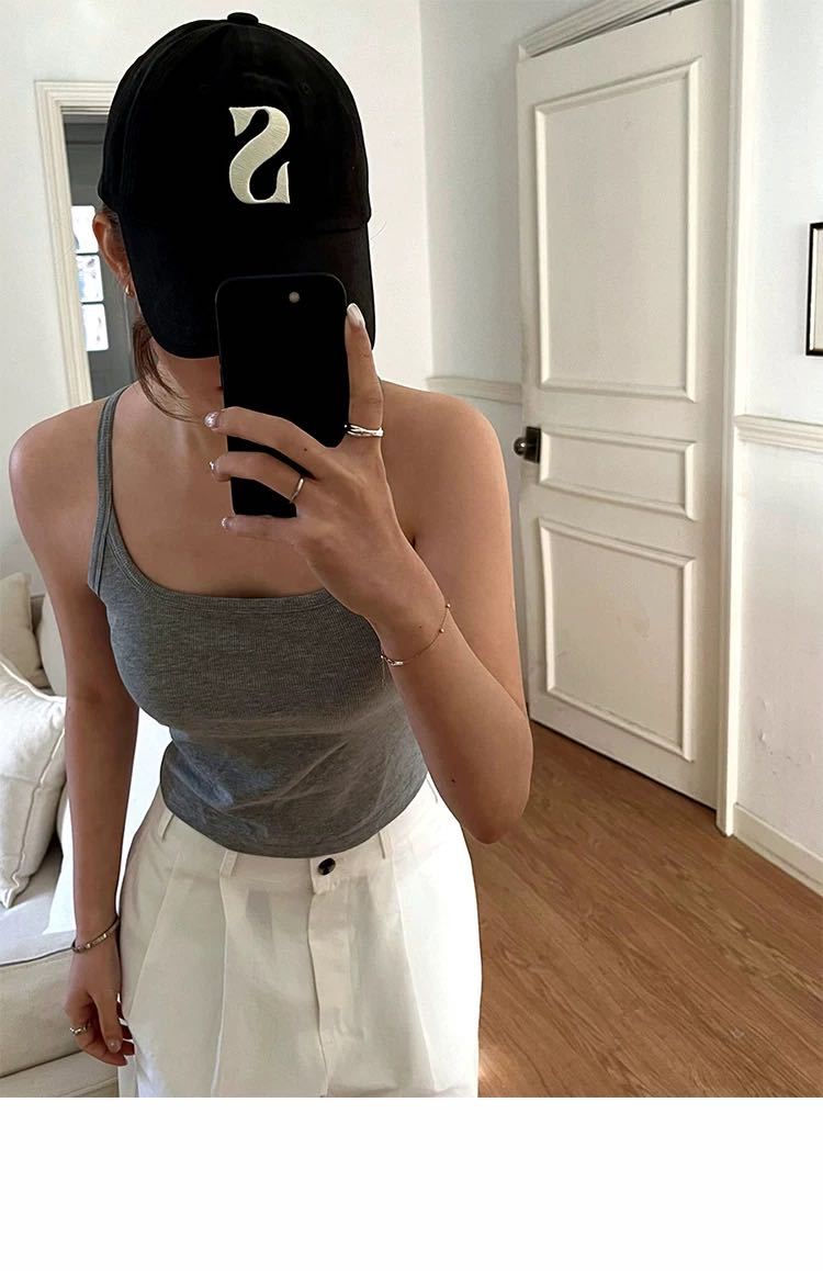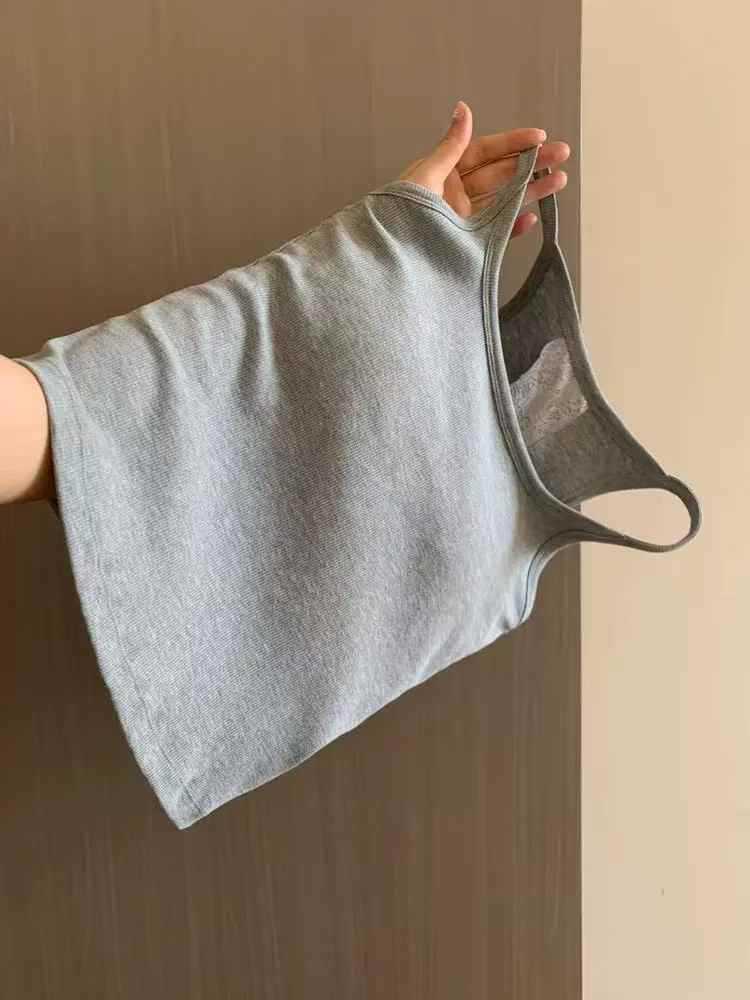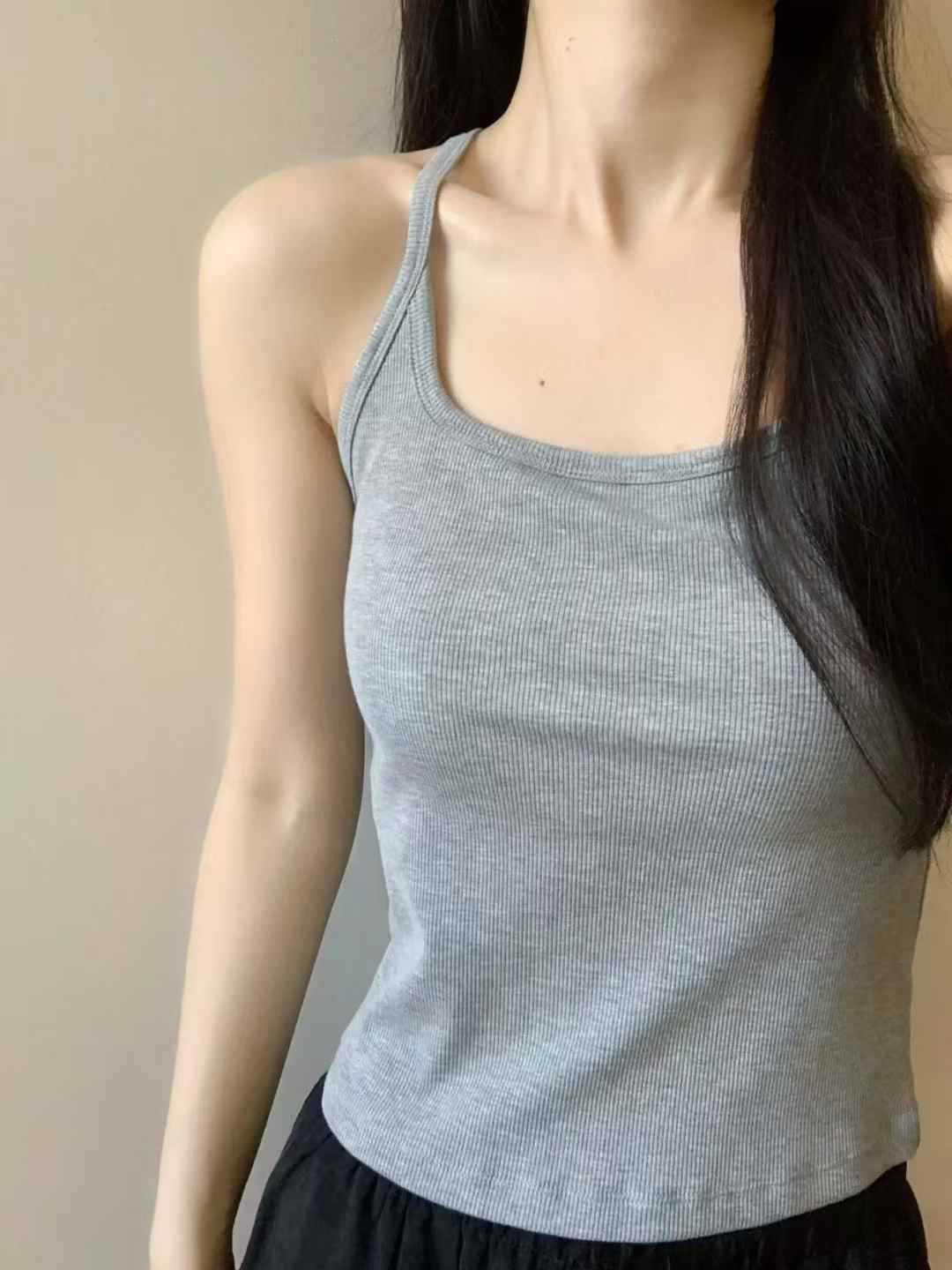 미국 스타일 회색 유행 간단한 조끼 가슴 패드 내부 카미 솔 여성용 할로우 슬림 핏 민소매 핫 걸 U-넥 탑스토어 가기