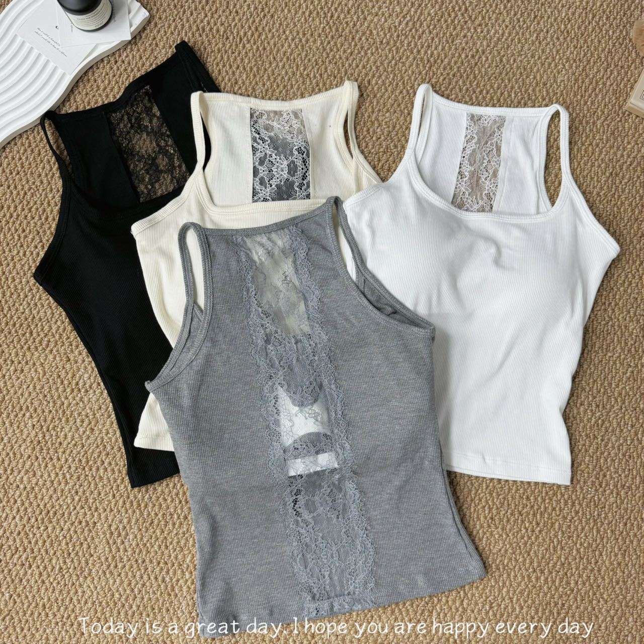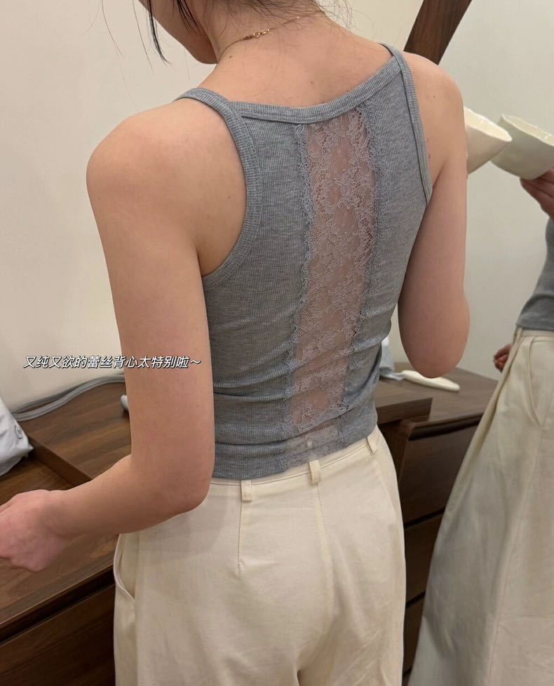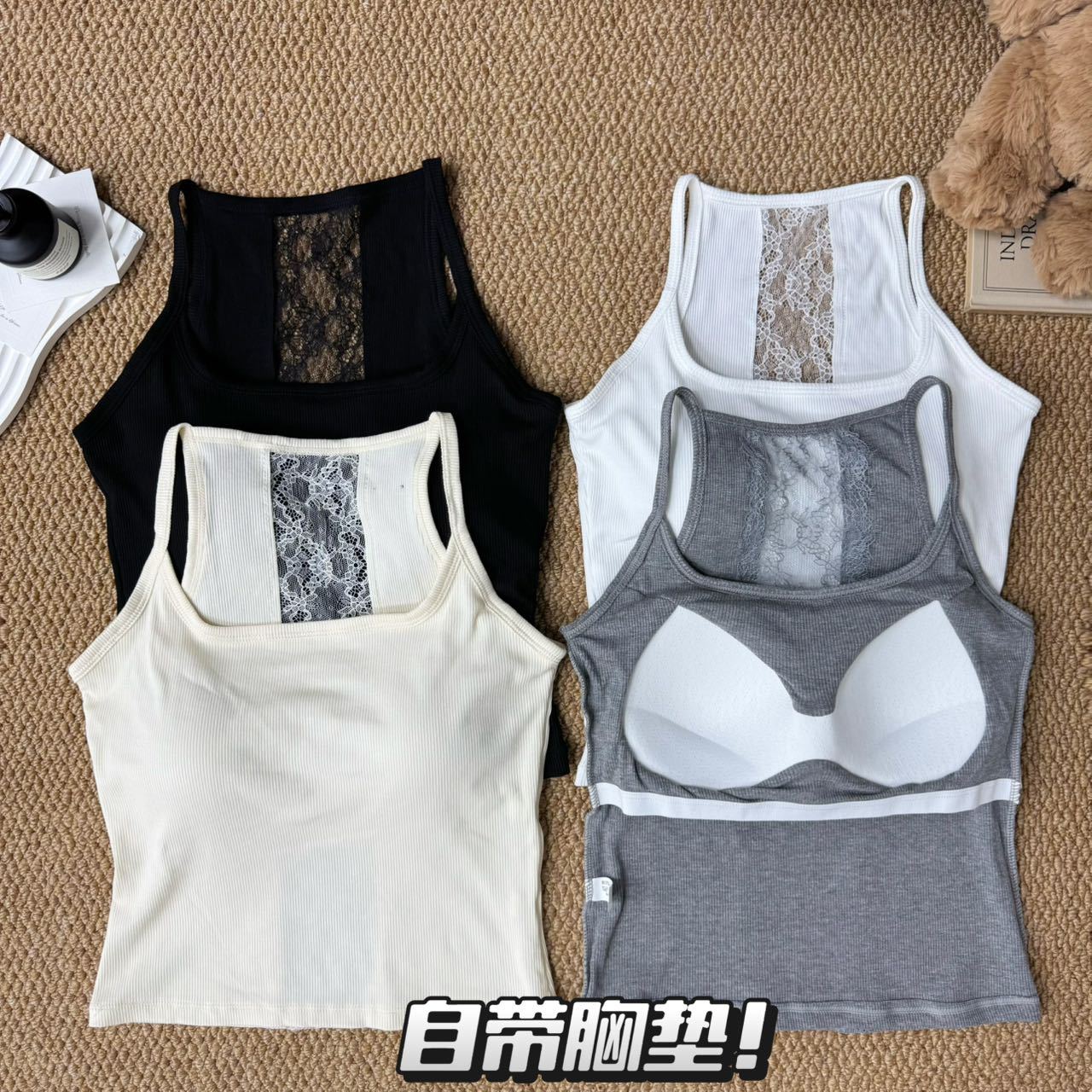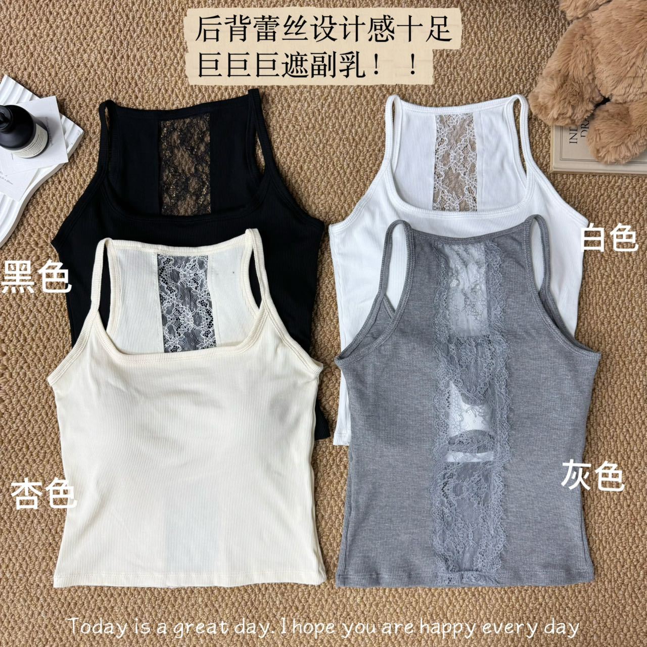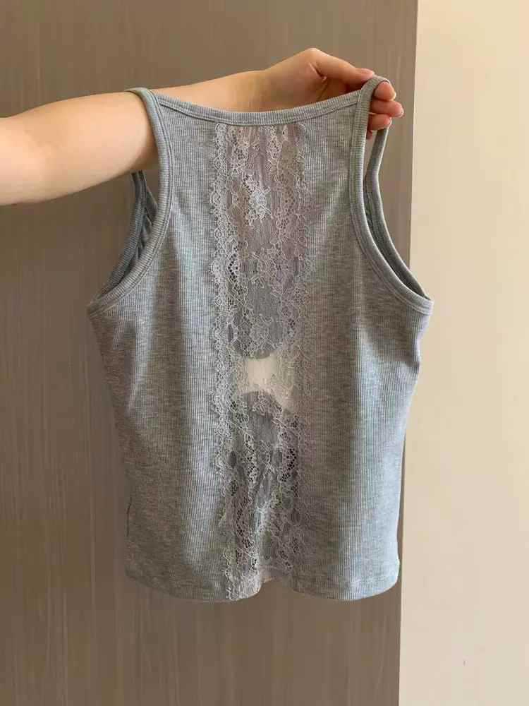 미국 스타일 회색 유행 간단한 조끼 가슴 패드 내부 카미 솔 여성용 할로우 슬림 핏 민소매 핫 걸 U-넥 탑스토어 가기