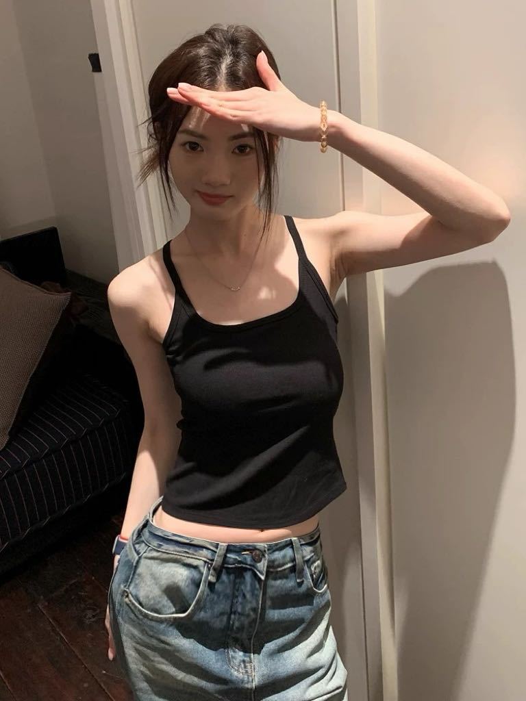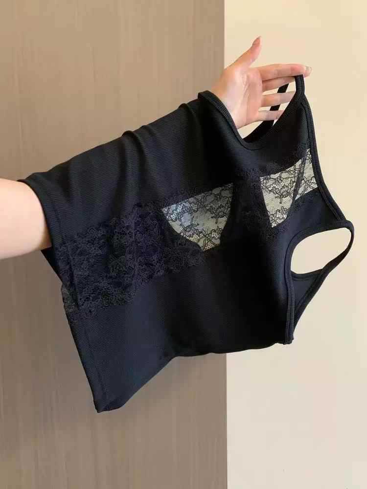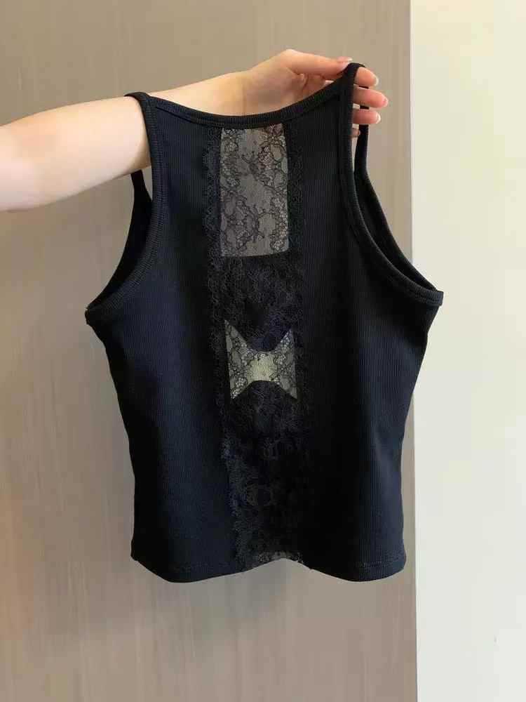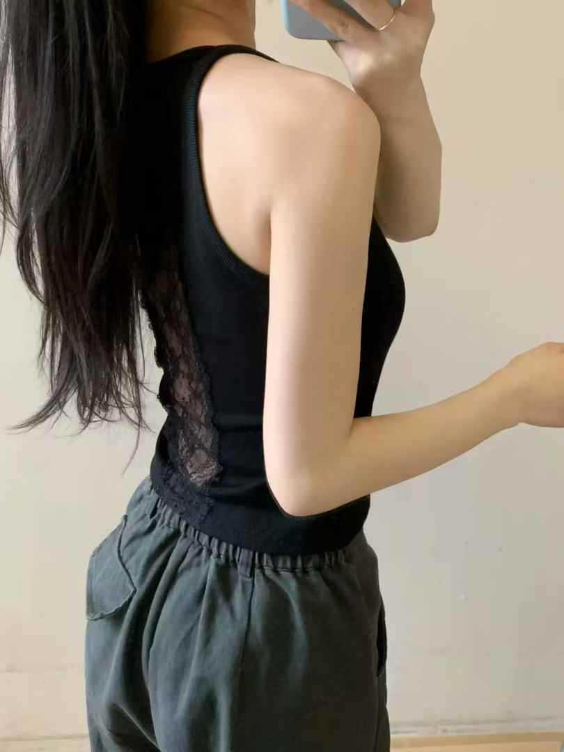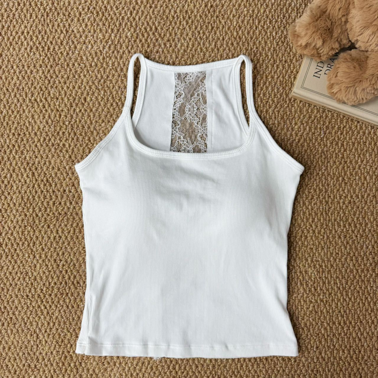 미국 스타일 회색 유행 간단한 조끼 가슴 패드 내부 카미 솔 여성용 할로우 슬림 핏 민소매 핫 걸 U-넥 탑스토어 가기