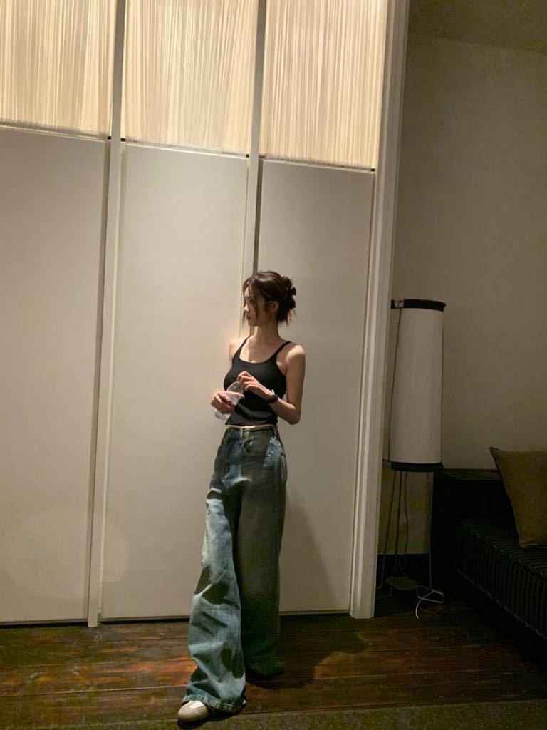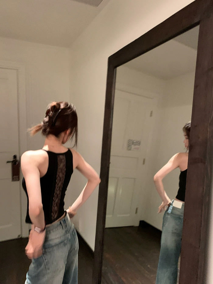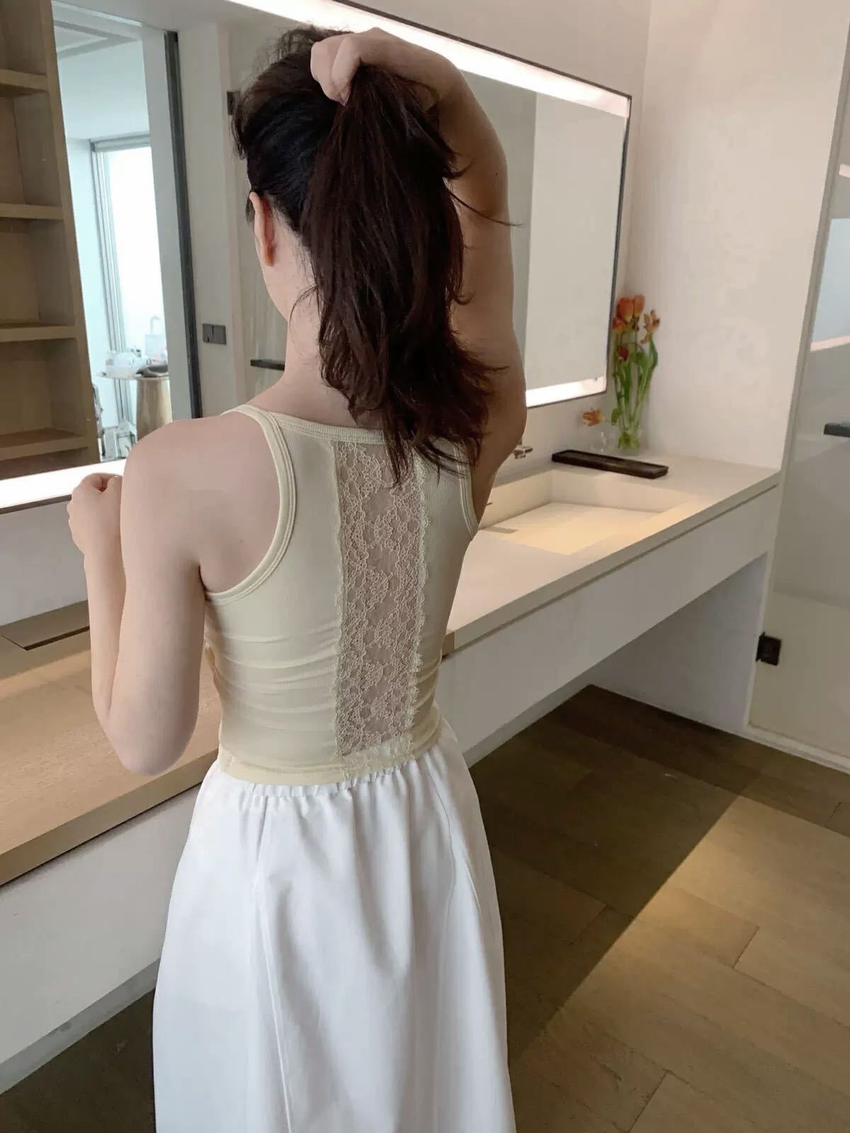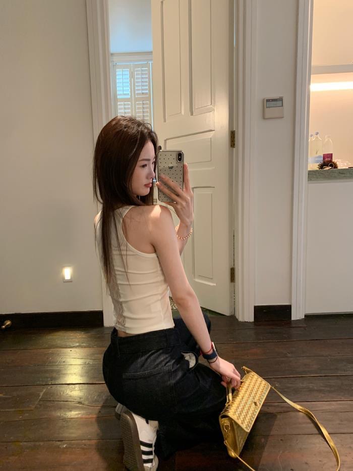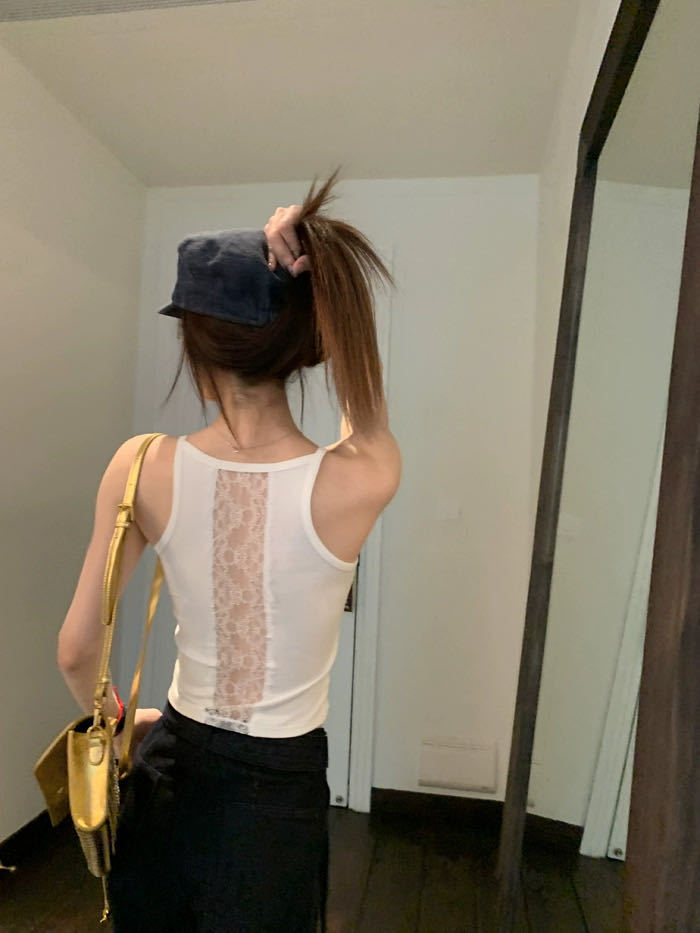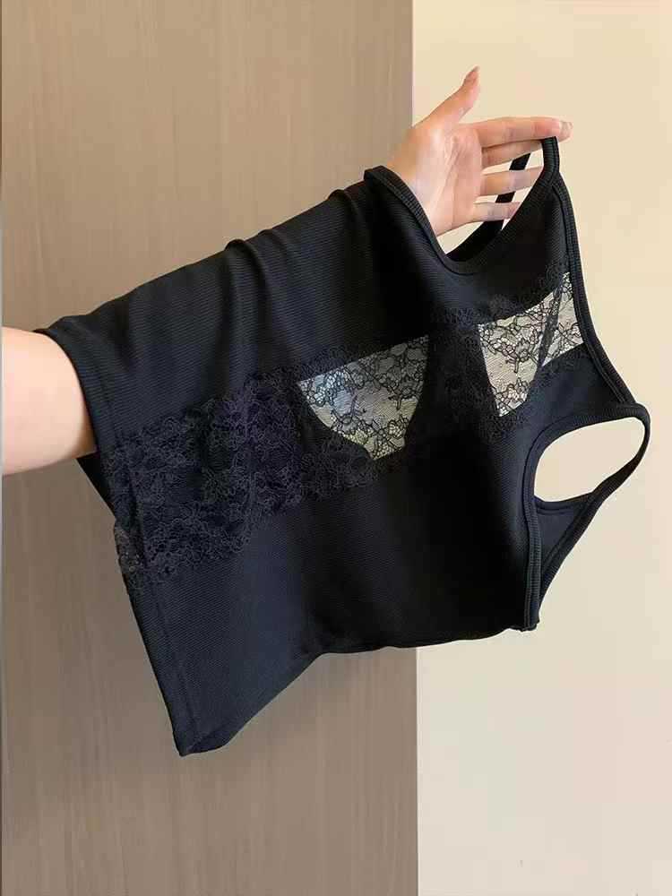 미국 스타일 회색 유행 간단한 조끼 가슴 패드 내부 카미 솔 여성용 할로우 슬림 핏 민소매 핫 걸 U-넥 탑스토어 가기