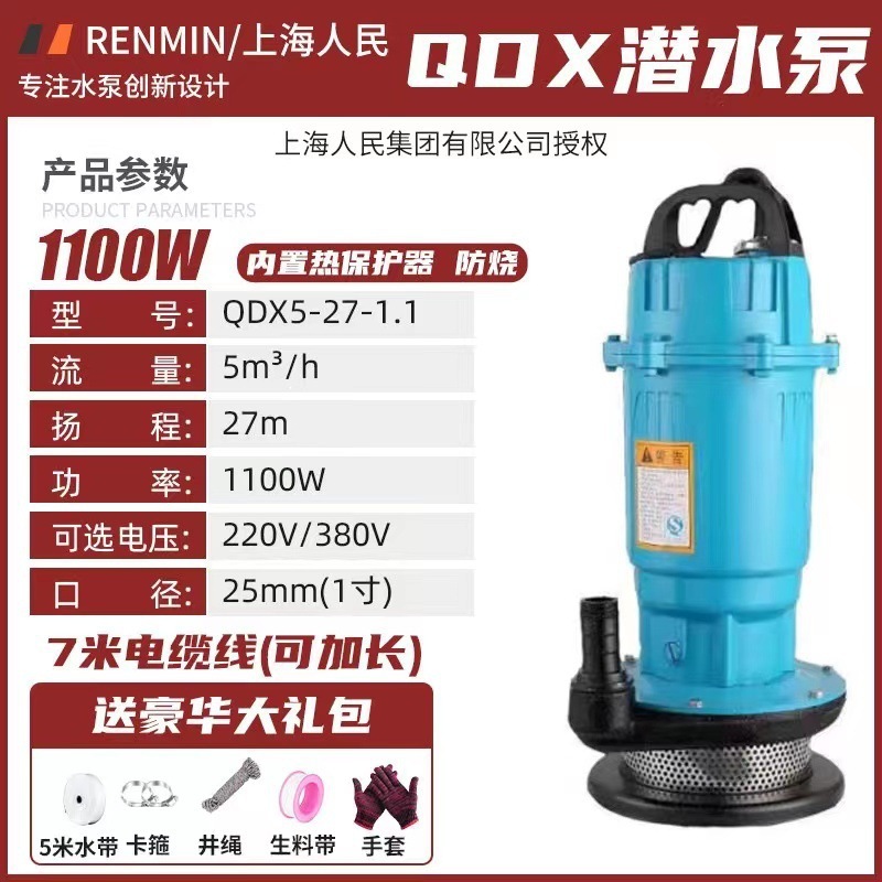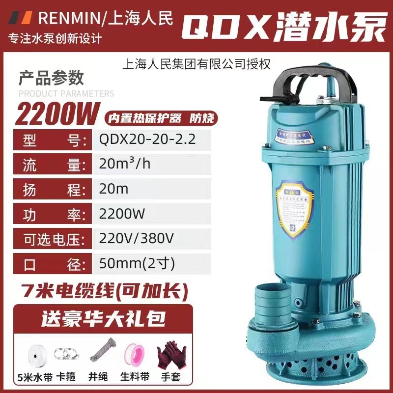 상하이 인민 수중 펌프 220v380v 깨끗한 물 펌프 농지 관개 펌프 가정용 대형 유량 고 승수 펌프