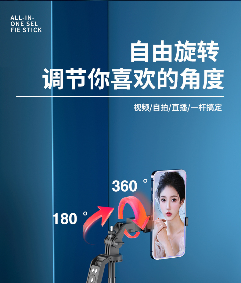 • 새롭게 업그레이드된 A17 블랙 [알루미늄 합금 셀카봉 1.8m개 + 충전 기능 Douyin 블루투스 리모컨 + 듀얼 헤드라이트]