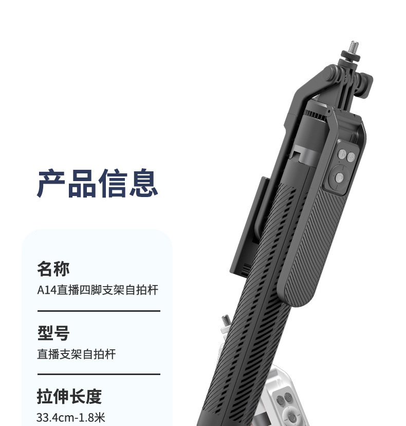 • 새롭게 업그레이드된 A14 블랙 [알루미늄 합금 셀카봉 1.8m개 + 충전 기능 Douyin 블루투스 리모컨 + 싱글 헤드라이트]
