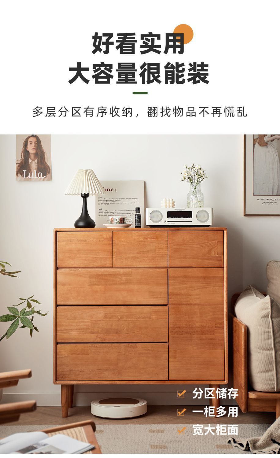 풀 솔리드 우드 버킷 캐비닛 체리 컬러 거실 사이드 캐비닛 홈 스토리지 캐비닛 서랍 캐비닛 간단한 현대 서랍 보관 캐비닛스토어 가기