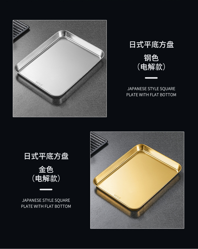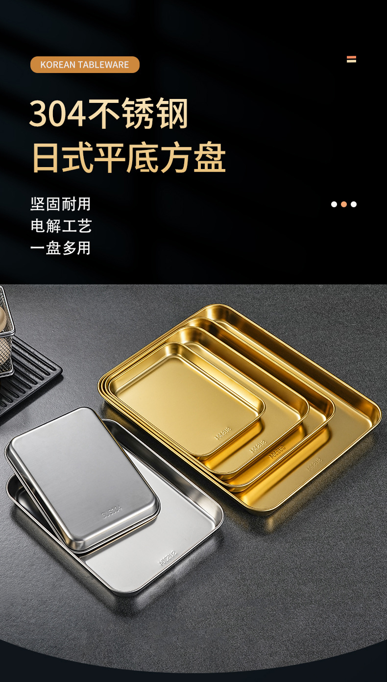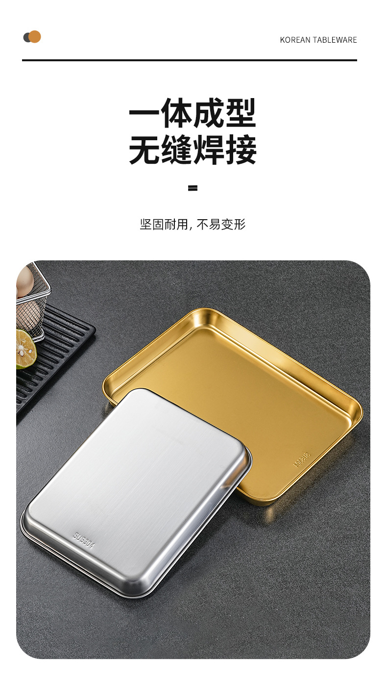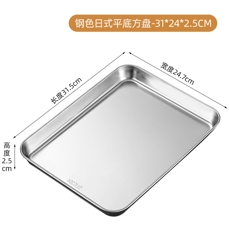 304 스테인레스 스틸 스퀘어 플레이트 트레이 상업용 가정용 두꺼운 차가운 피부 쌀 그릇 플레이트 디너 플레이트 직사각형 플레이트스토어 가기
