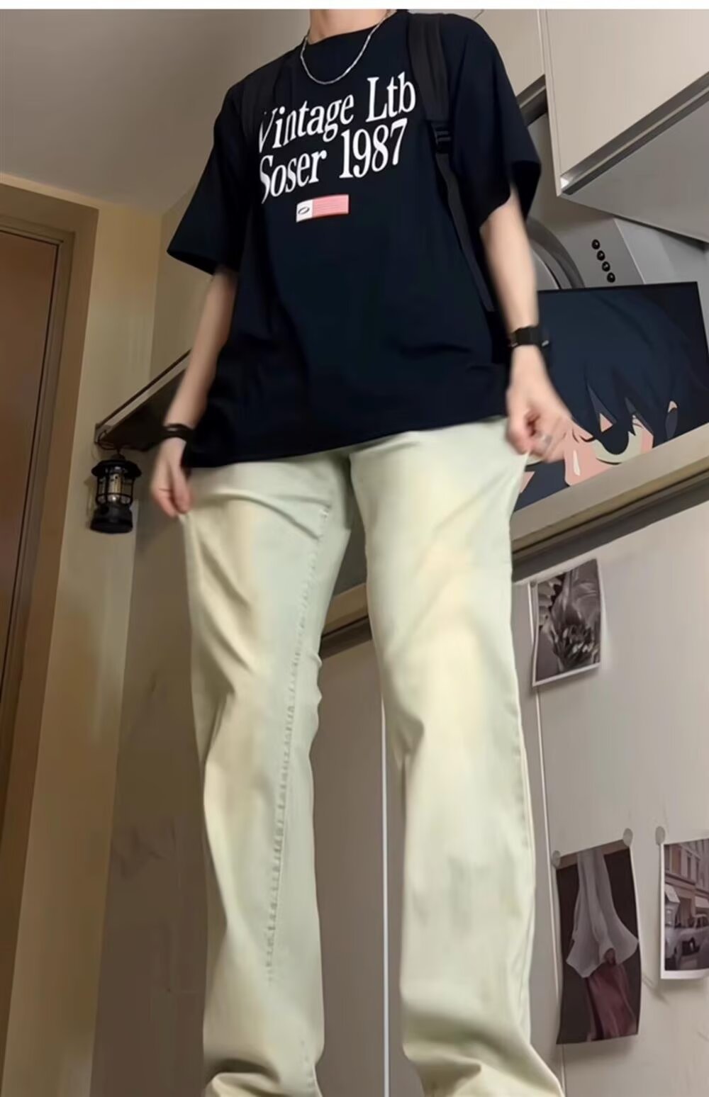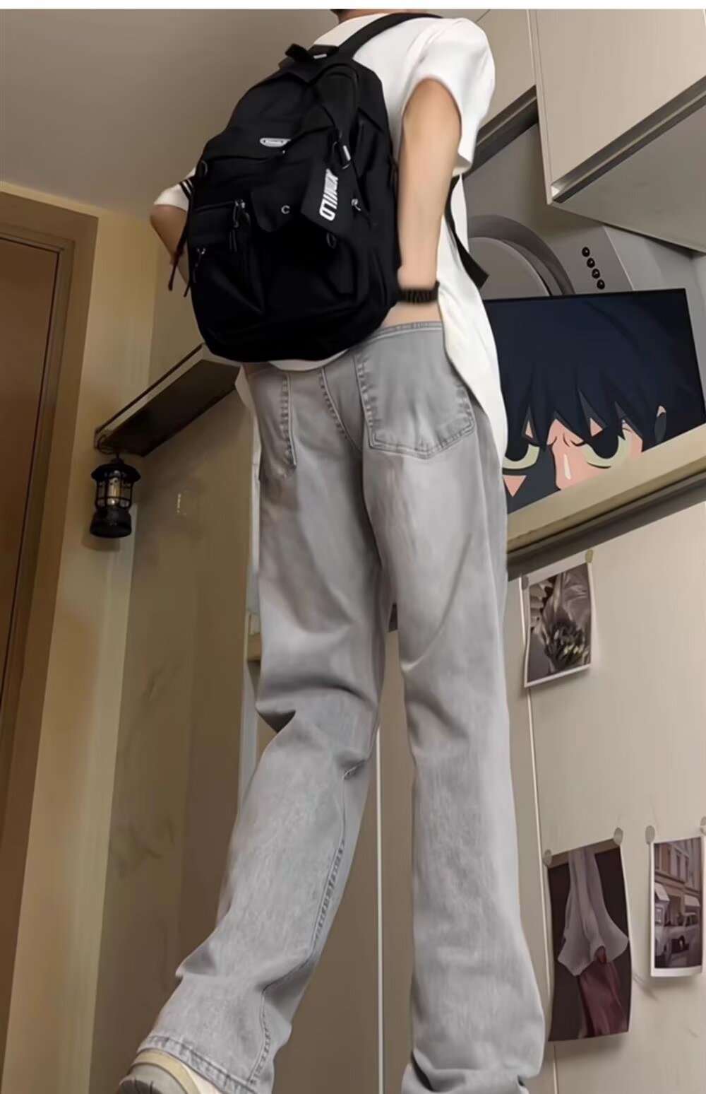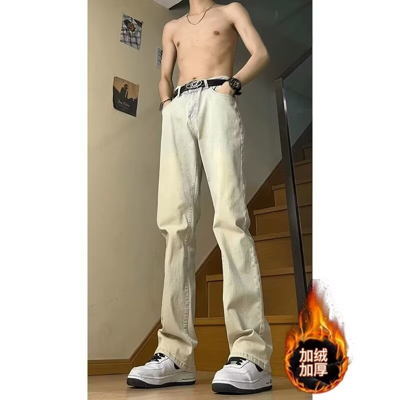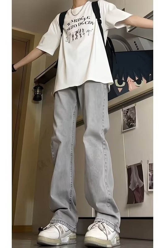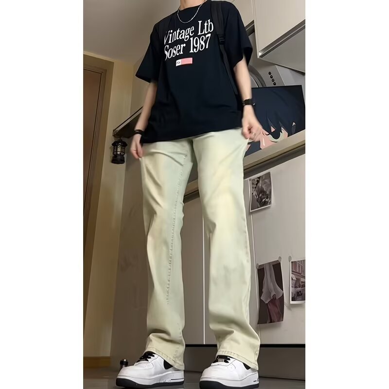 청바지 남자 2024 년 새로운 봄과 가을 스트레이트 마이크로 라르 소년 미국식 하이 스트리트 트렌디 브랜드 바지
