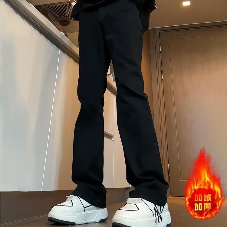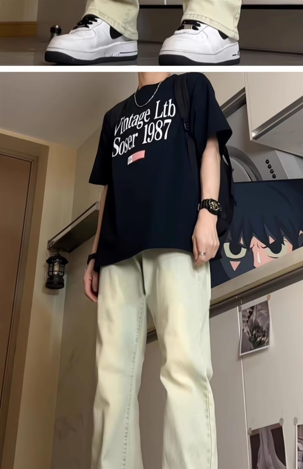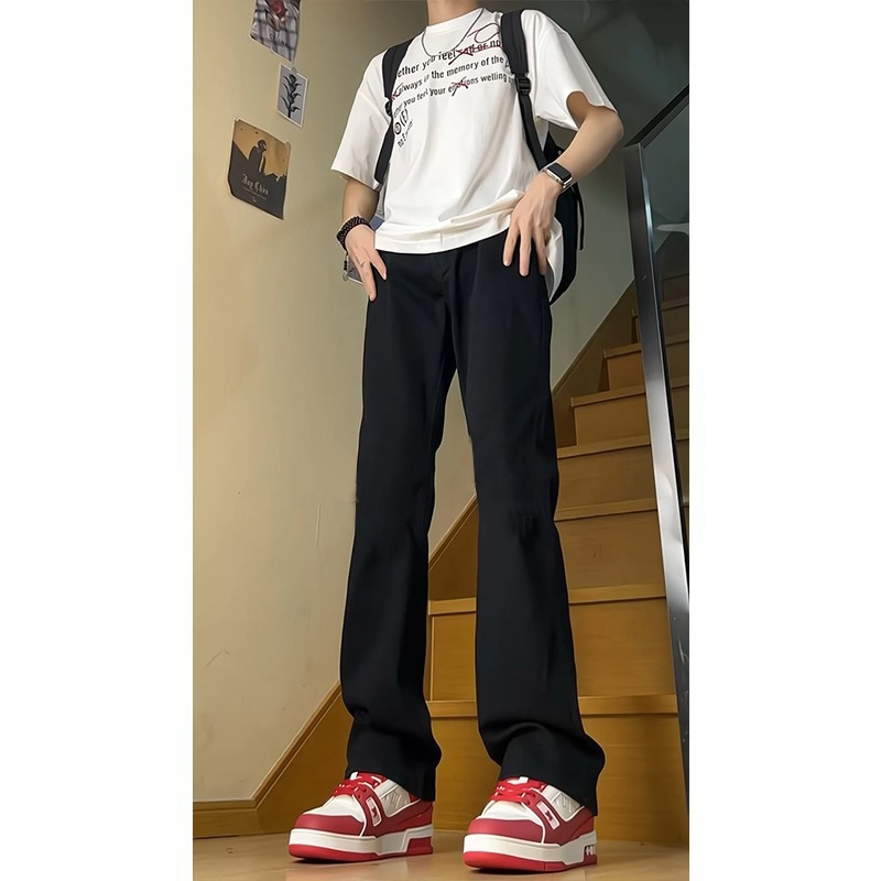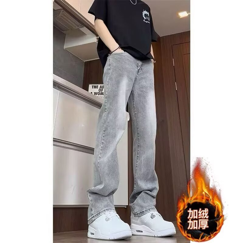 청바지 남자 2024 년 새로운 봄과 가을 스트레이트 마이크로 라르 소년 미국식 하이 스트리트 트렌디 브랜드 바지