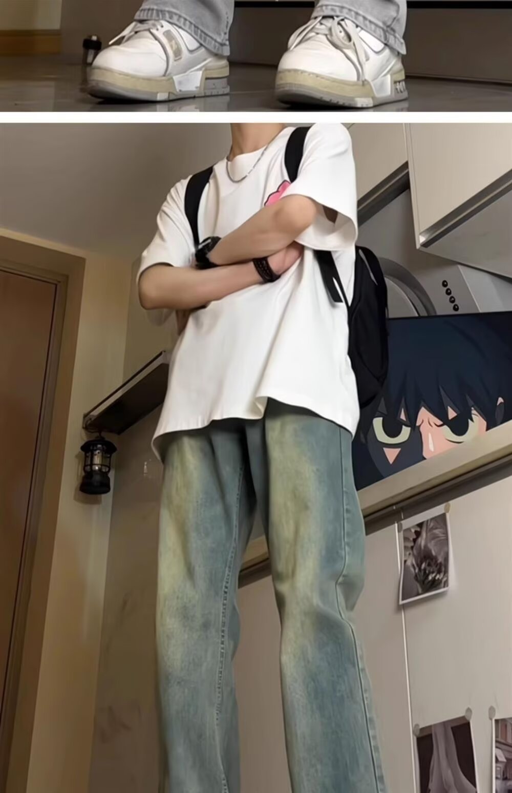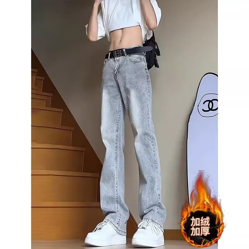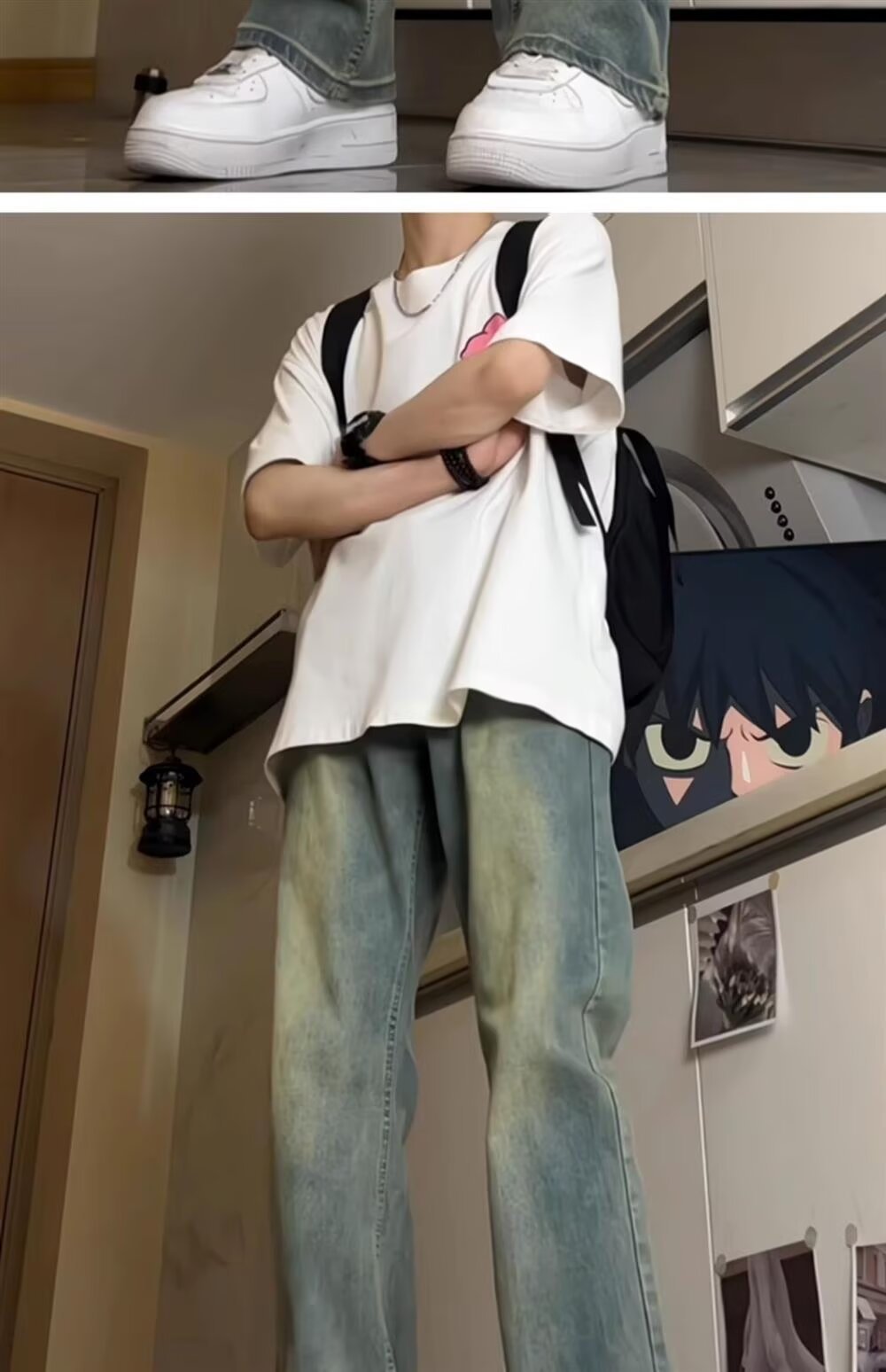 청바지 남자 2024 년 새로운 봄과 가을 스트레이트 마이크로 라르 소년 미국식 하이 스트리트 트렌디 브랜드 바지스토어 가기