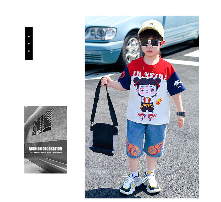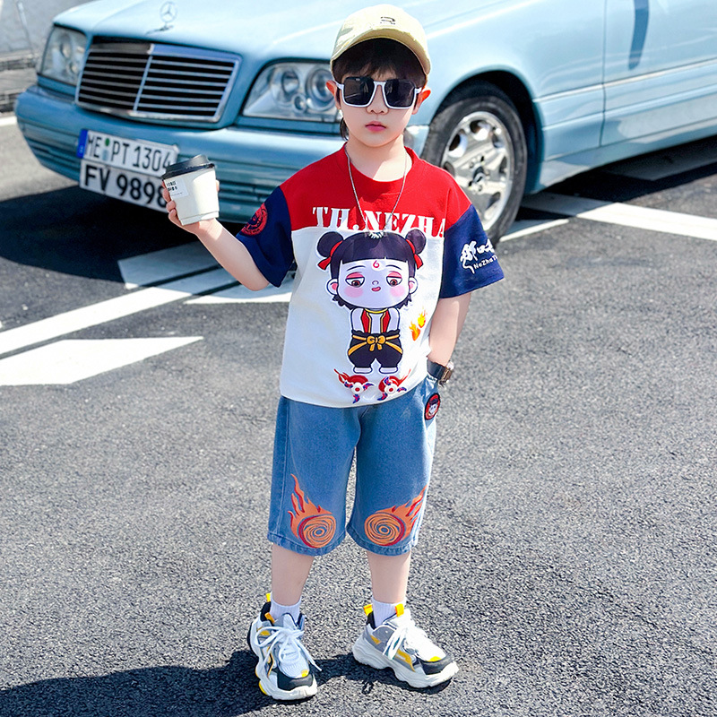 Nezha 아동복 2025 새로운 아기 여름 멋진 Nezha 옷 소년 여름 반팔 양복 마술 아동스토어 가기
