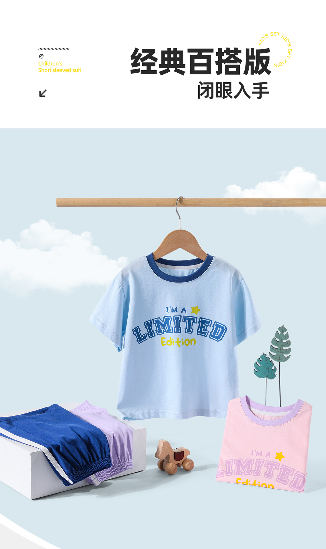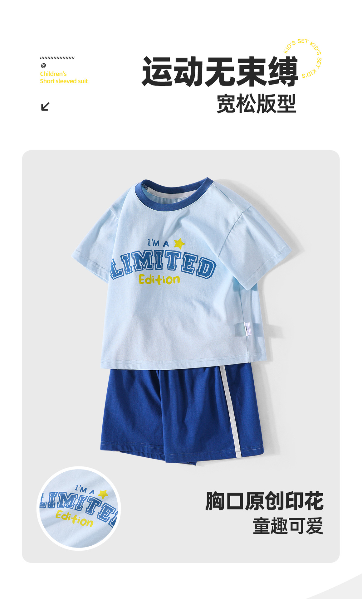 2322 여름 새로운 어린이 반팔 반바지 세트 코튼 얇은 스타일 소년 소녀 아기 티셔츠 바지 두 조각스토어 가기