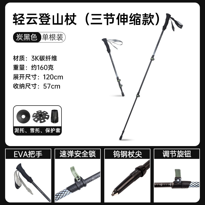 Shixing 3K 탄소 섬유 등반 직원 탄소 울트라 라이트 망원경 남녀 등반 장비 전문 야외 하이킹 워킹 스틱스토어 가기