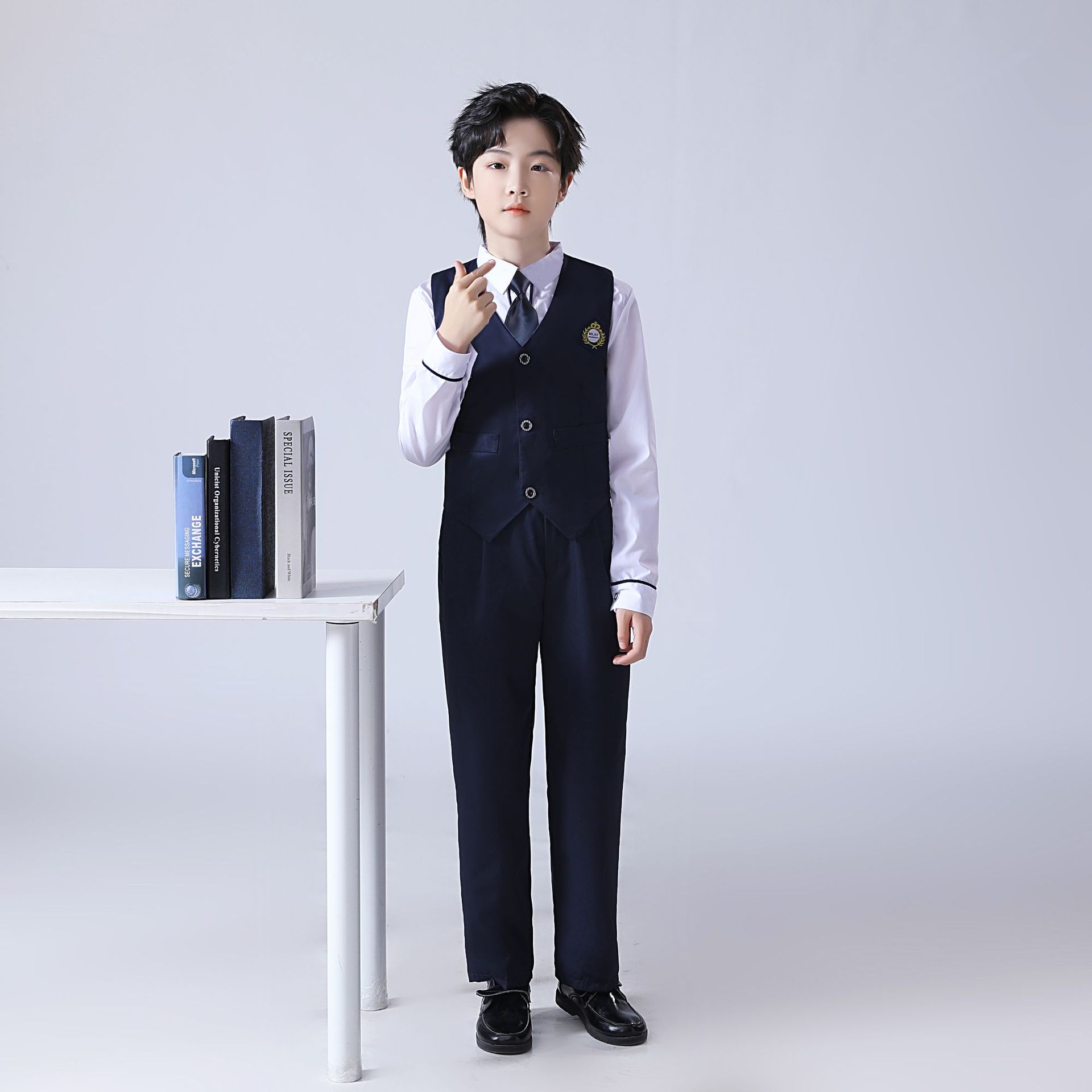• 소년 남색 조끼 정장