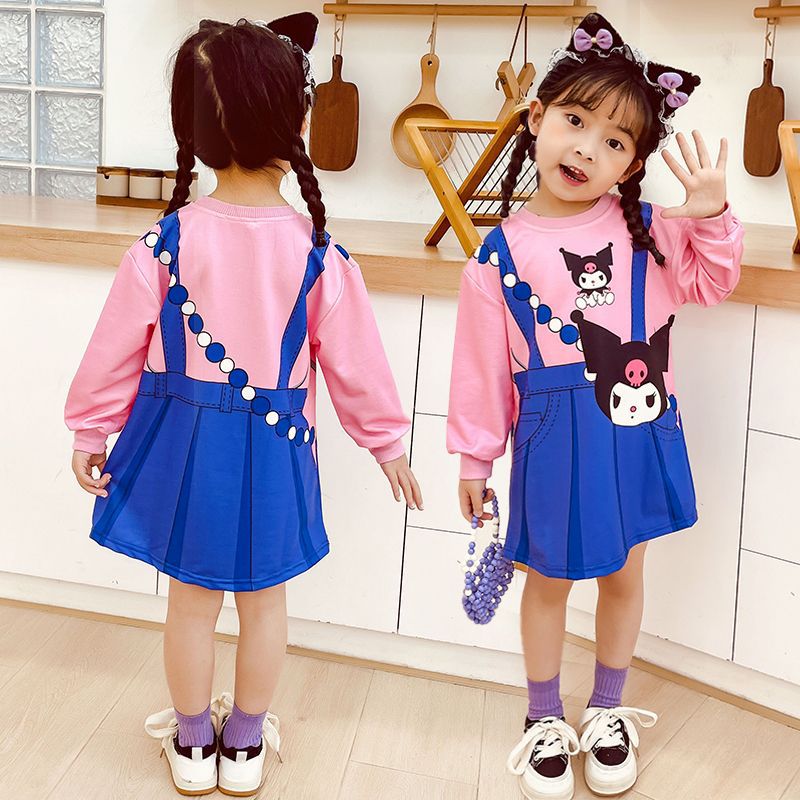 여자 봄, 가을 탑 스커트 새로운 멜로디 쿠로미 가짜 멜빵 긴팔 드레스 귀여운 스커트