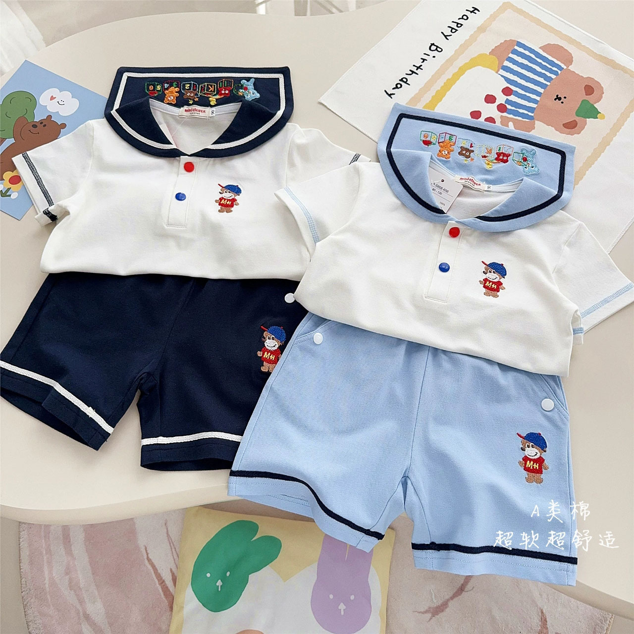 대외 무역 일본 i 소프트 네이비 반팔 양복 25 여름 새 스타일 소년과 소녀 자수 대학 스타일 양복 7011