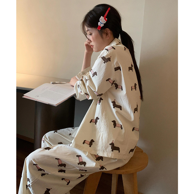한국식 폭발 닥스 훈트 개 순면 파자마 여성 봄과 가을 새 가리 편안한 연화면 긴팔 홈 옷