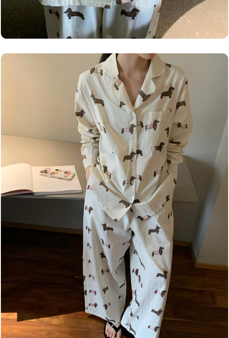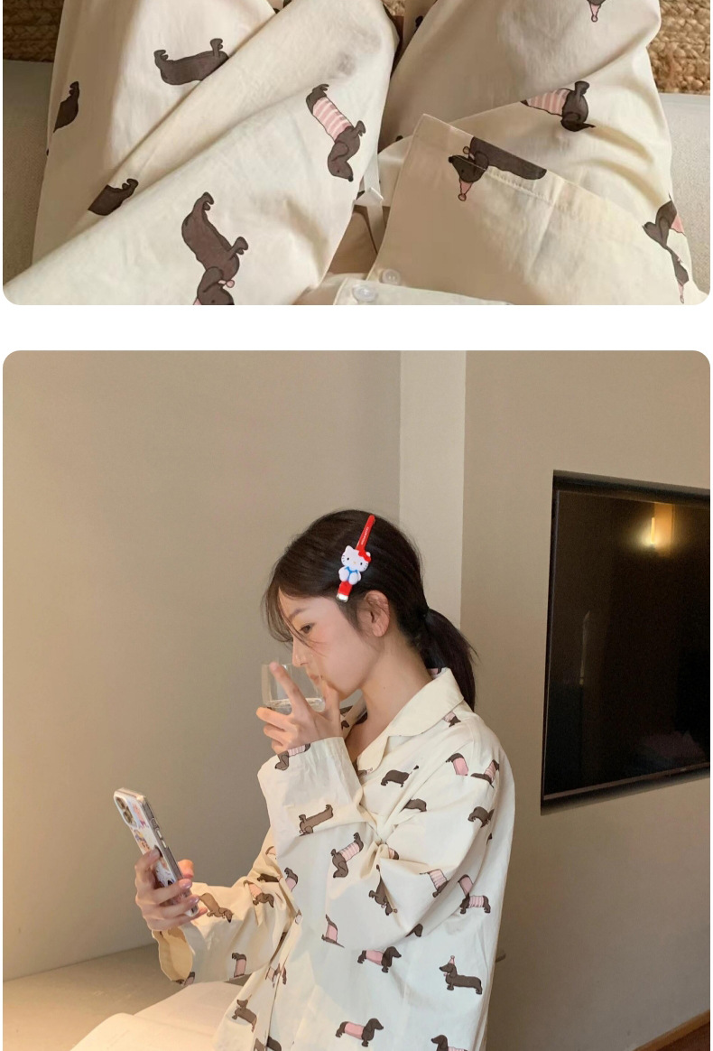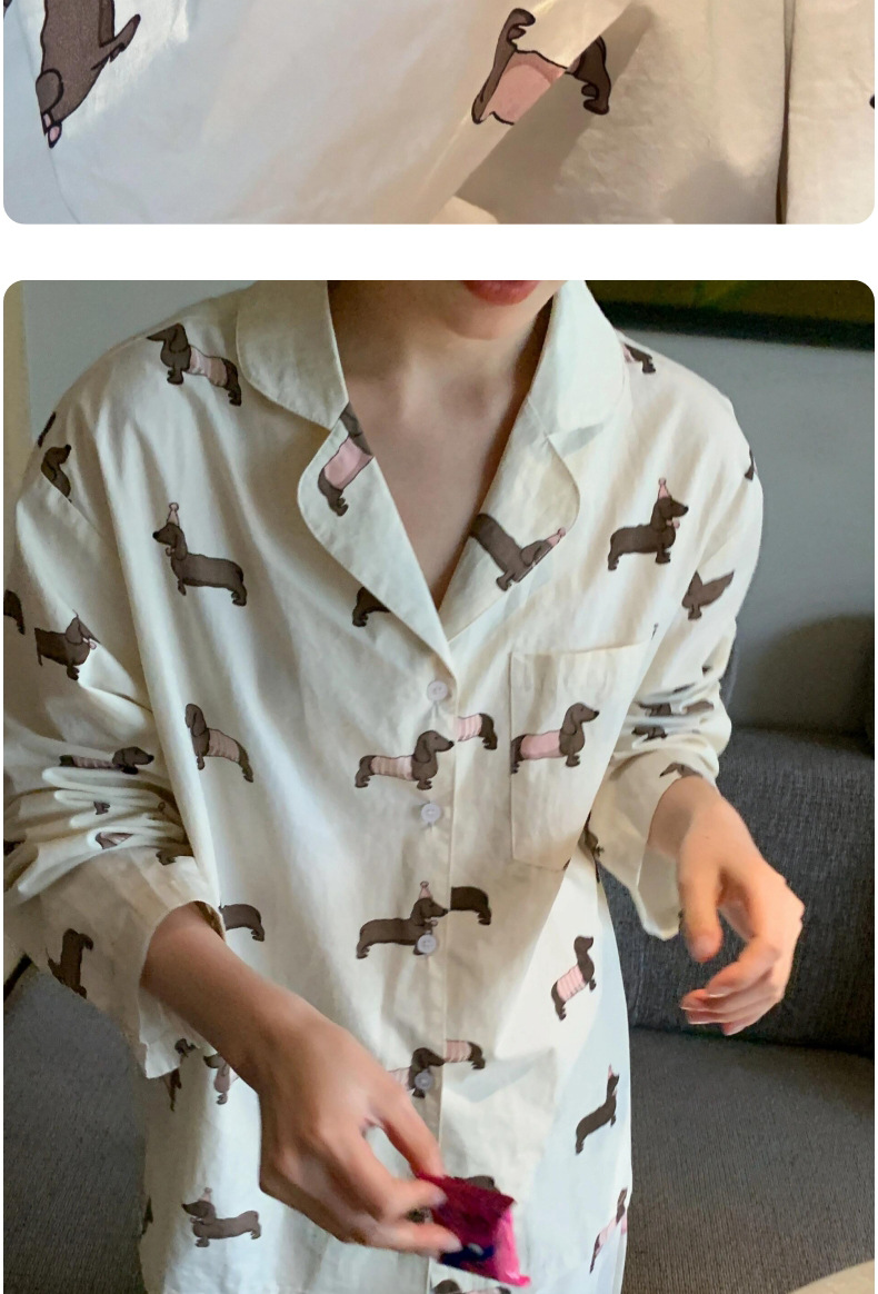 한국식 폭발 닥스 훈트 개 순면 파자마 여성 봄과 가을 새 가리 편안한 연화면 긴팔 홈 옷스토어 가기