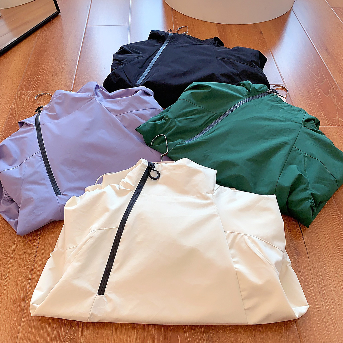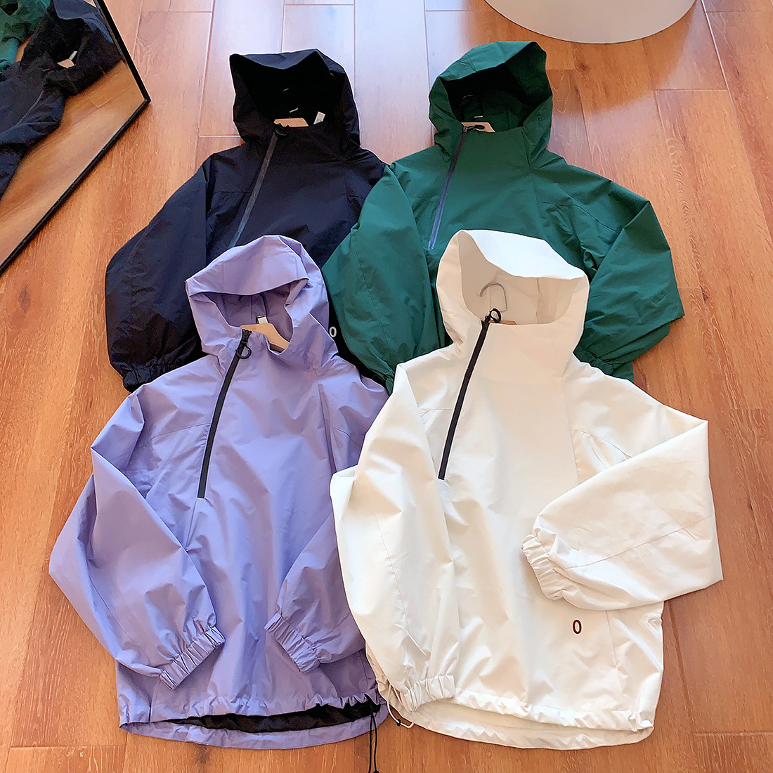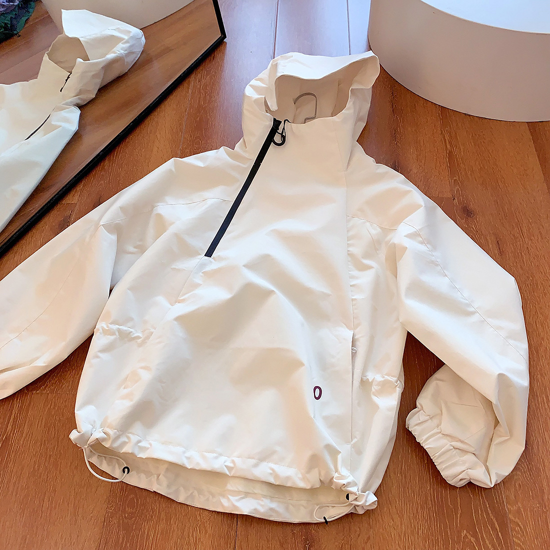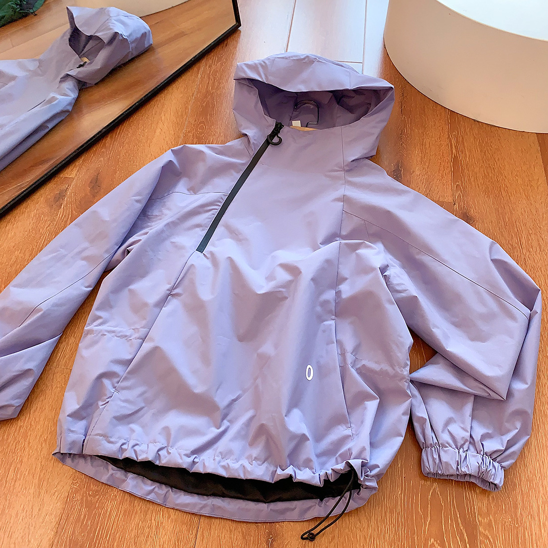 디자인 센스 틈새 여성의 후드가 느슨한 경사 지퍼 발수 야외 풀오버 자켓으로 가득 차 있습니다.스토어 가기