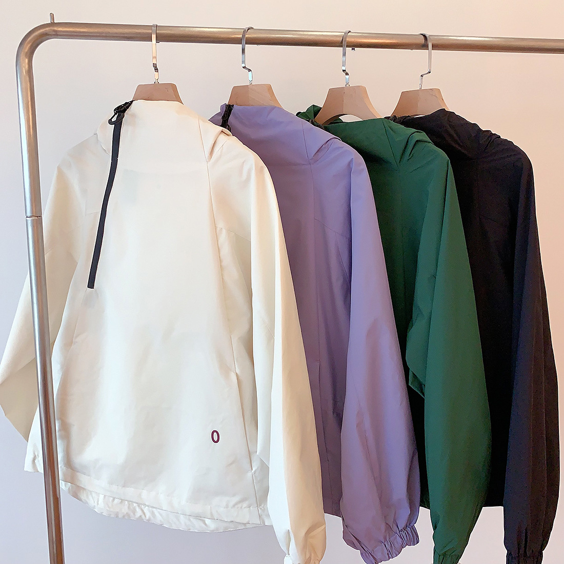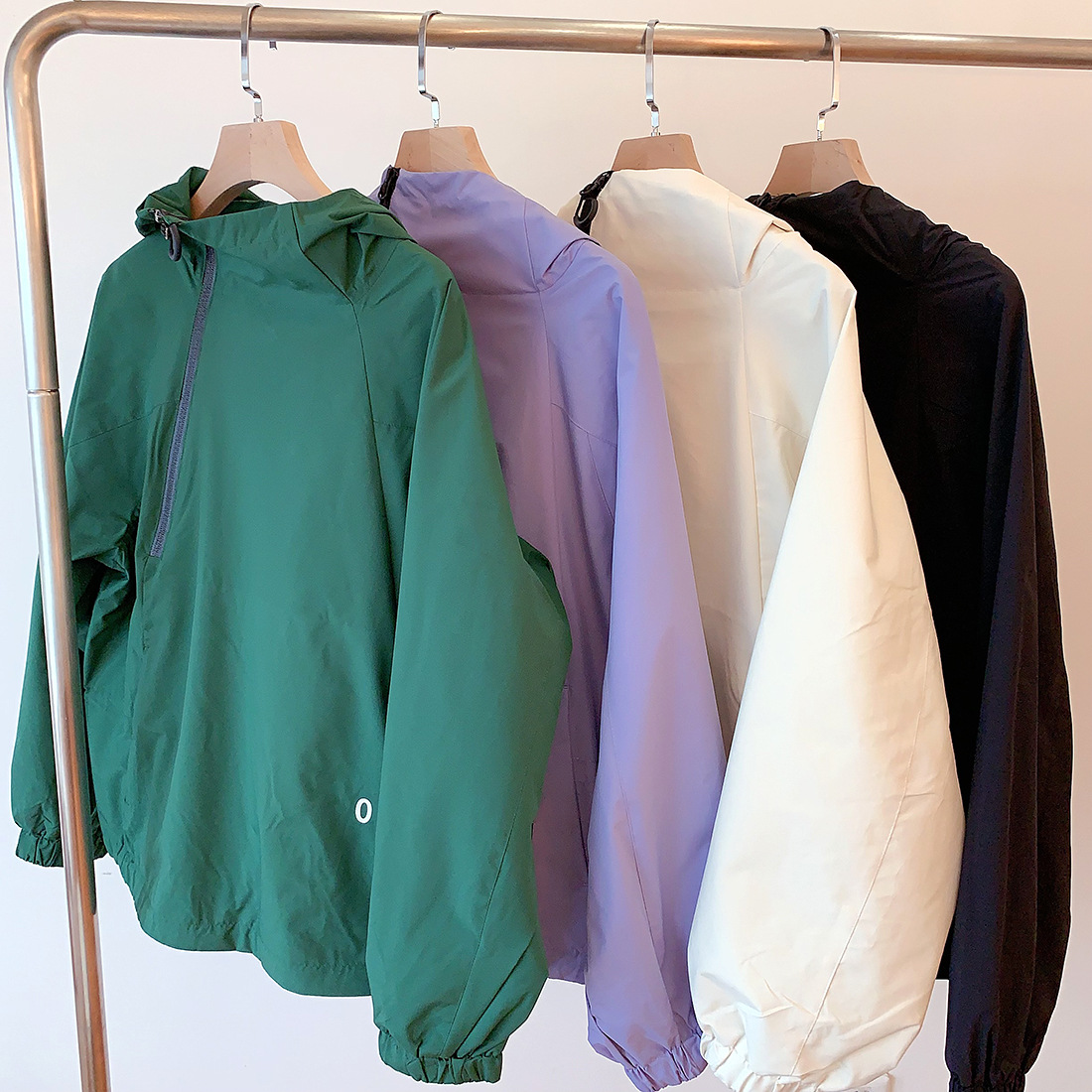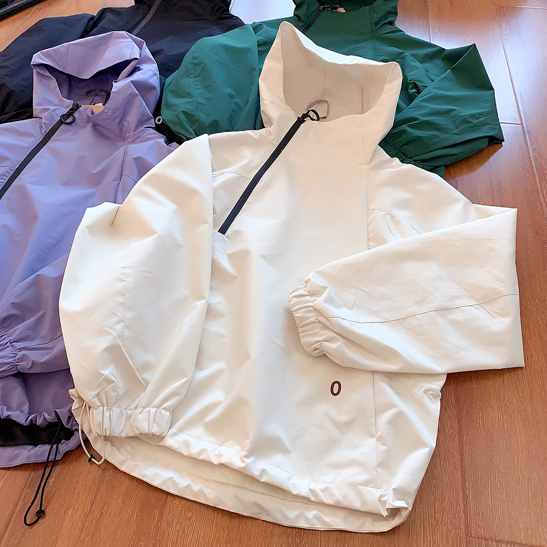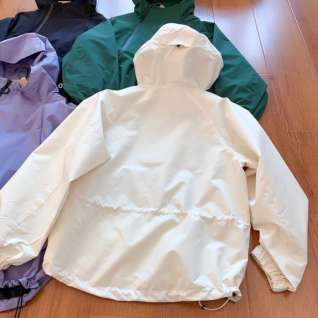 디자인 센스 틈새 여성의 후드가 느슨한 경사 지퍼 발수 야외 풀오버 자켓으로 가득 차 있습니다.스토어 가기