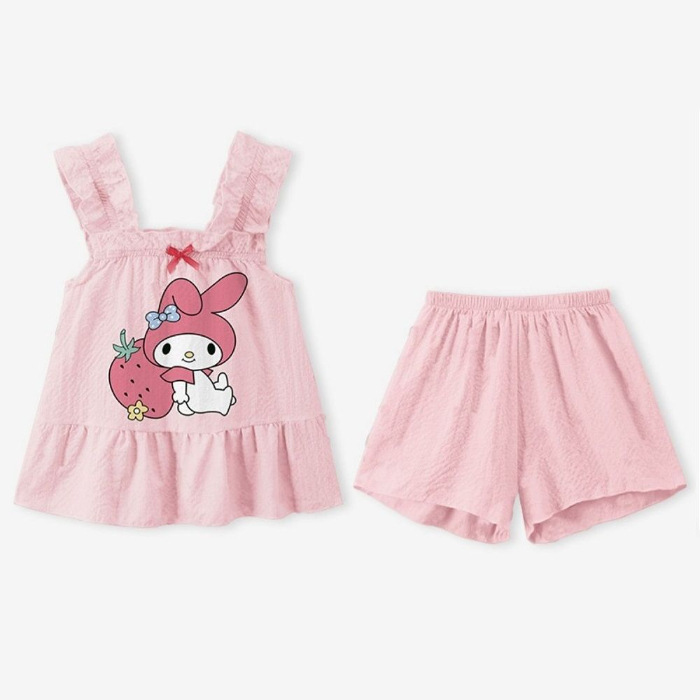 2025 새로운 여자 만화 캐미솔 정장 얇은 아기 반팔 공주 어린이 잠옷 여름 옷
