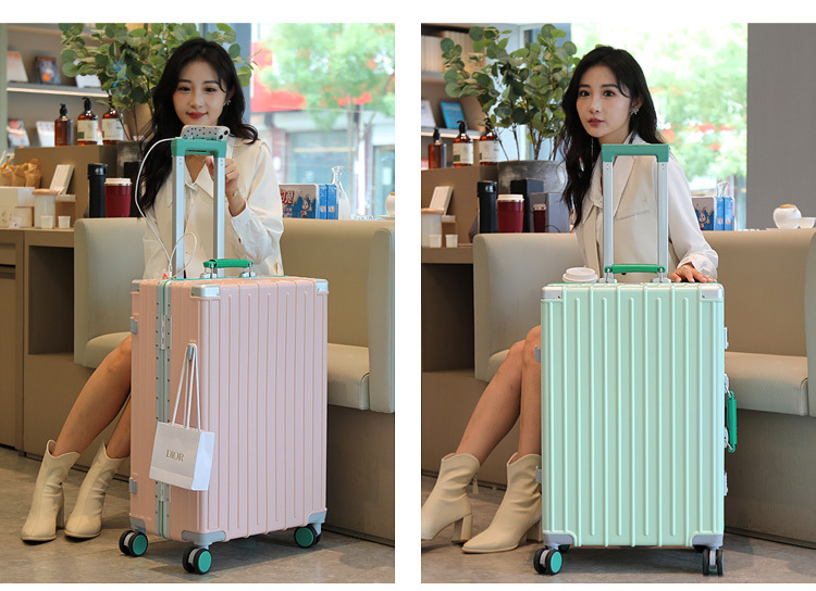 컵 홀더 USB 충전 구멍 가방 2025 새로운 레트로 명암 컬러 트롤리 케이스 높은 색상 가치 비즈니스 수하물스토어 가기