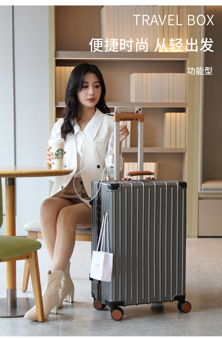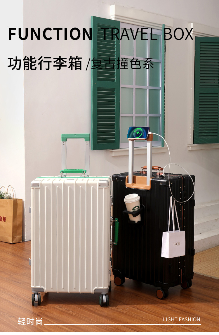 컵 홀더 USB 충전 구멍 가방 2025 새로운 레트로 명암 컬러 트롤리 케이스 높은 색상 가치 비즈니스 수하물