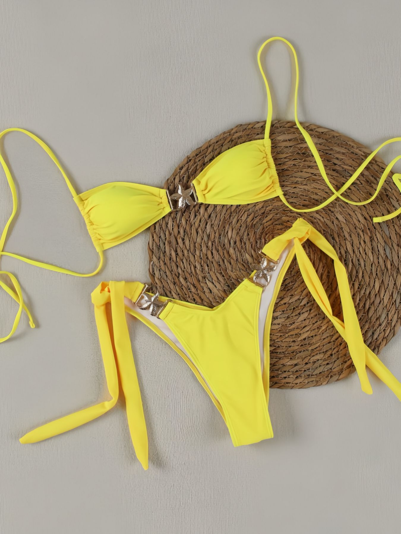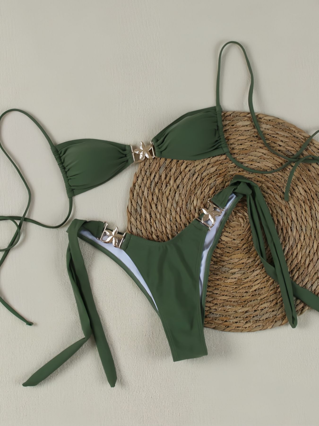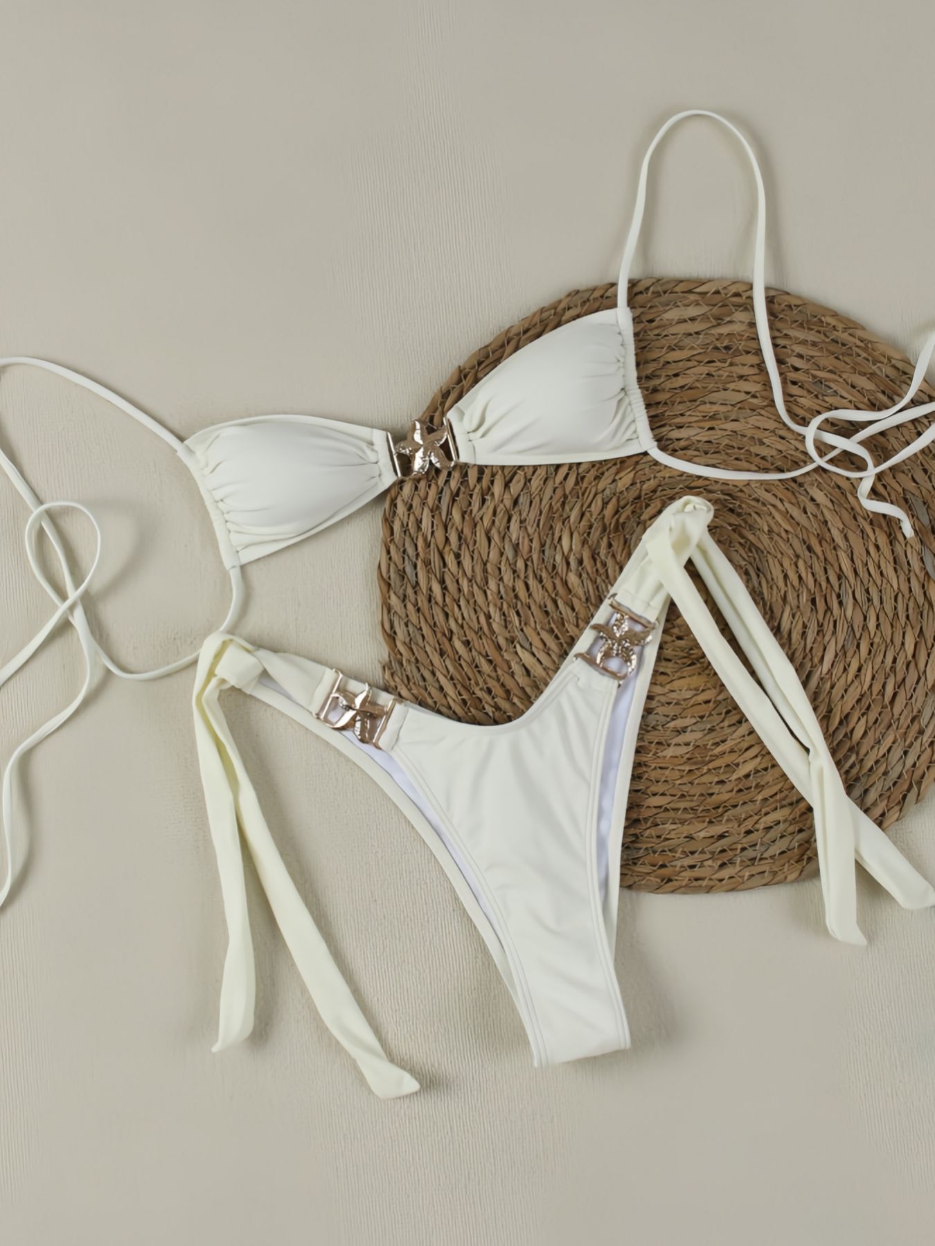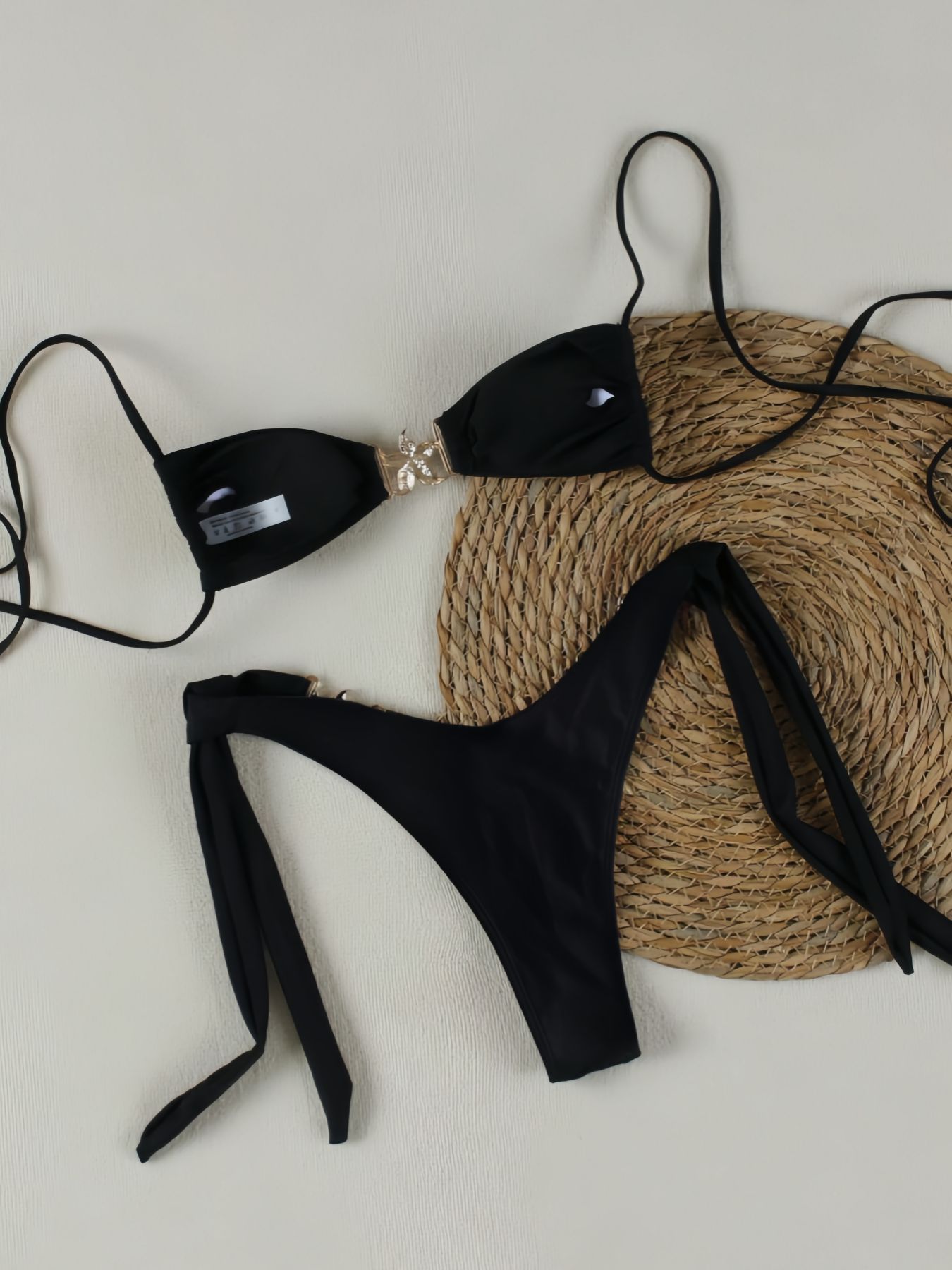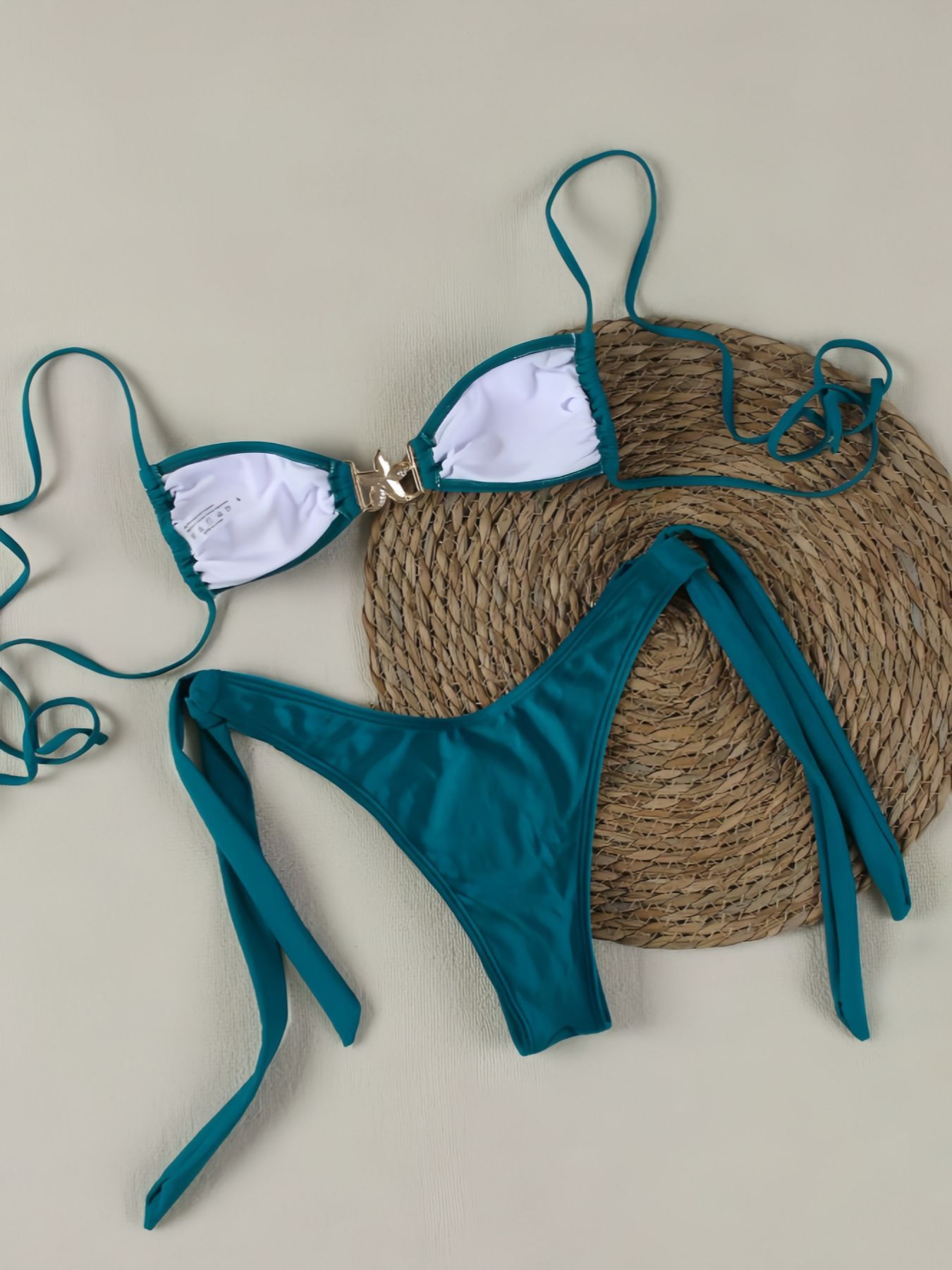 2025 새로운 솔리드 컬러 유럽과 미국의 크로스보더 비키니 아마존 수영복 끈이 없는 섹시한 해변 비키니 수영복