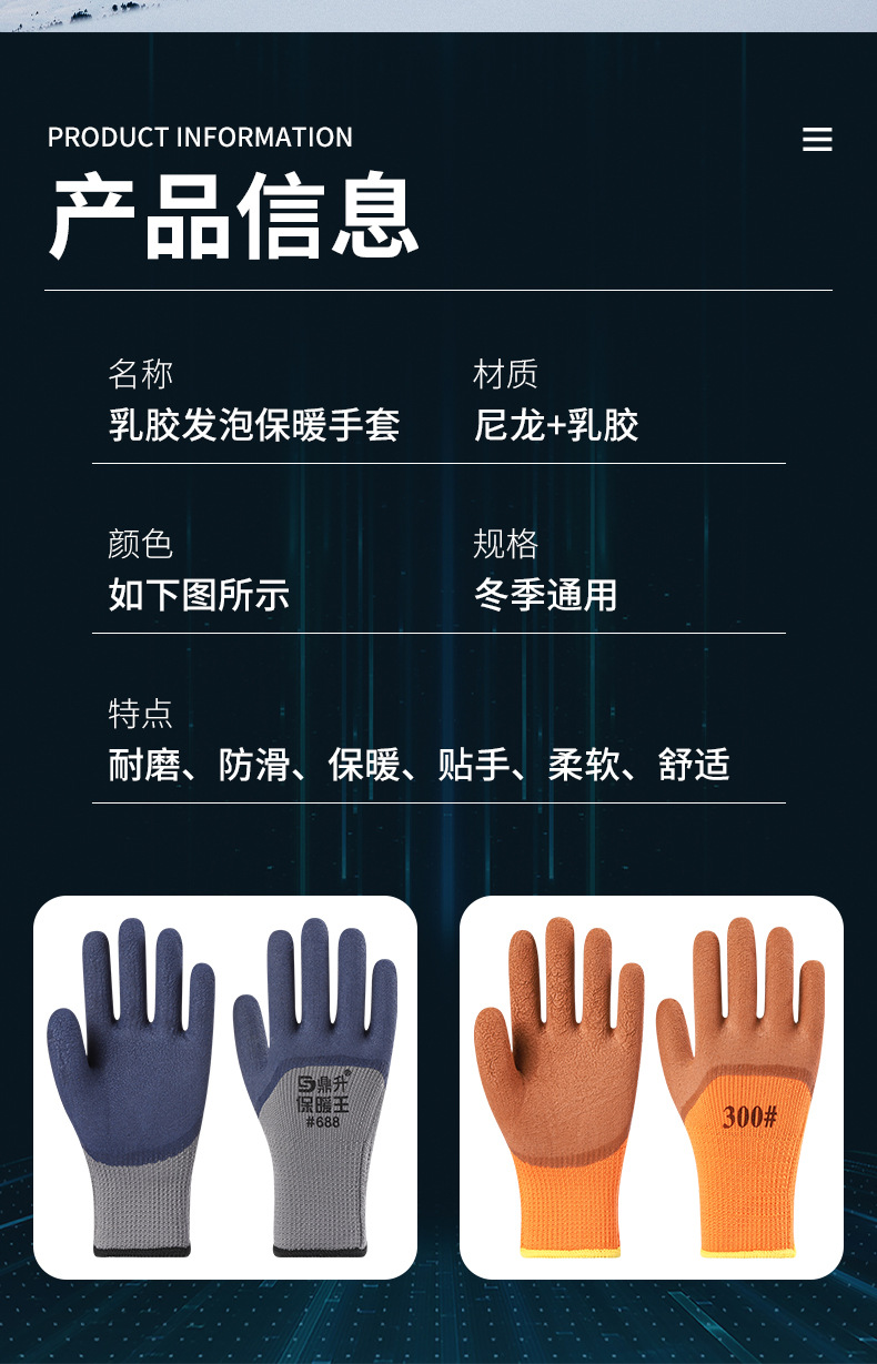 기모 두꺼운 따뜻한 보호 장갑 겨울 사이트 장갑 남성용 라텍스 디퍼 미끄럼 방지 노동 보호 장갑스토어 가기