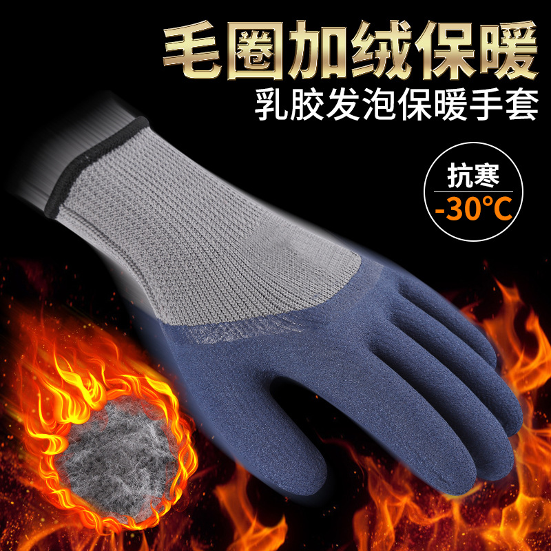 기모 두꺼운 따뜻한 보호 장갑 겨울 사이트 장갑 남성용 라텍스 디퍼 미끄럼 방지 노동 보호 장갑