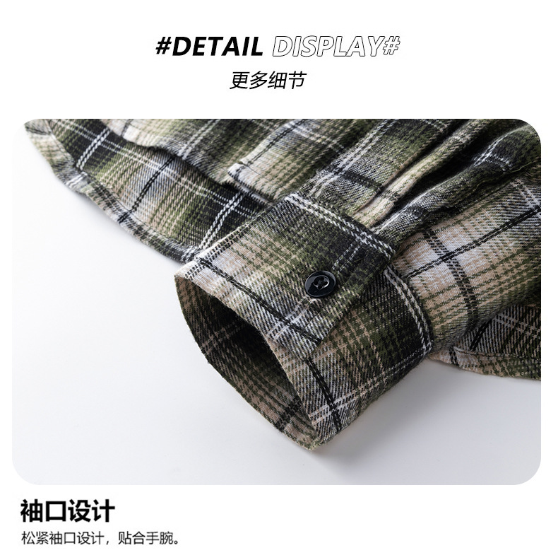 국경 간 대외 무역 남자 긴팔 체크 후드 셔츠 미국 레트로 트렌디 브랜드 루즈 캐주얼 플러스 사이즈 셔츠 재킷스토어 가기