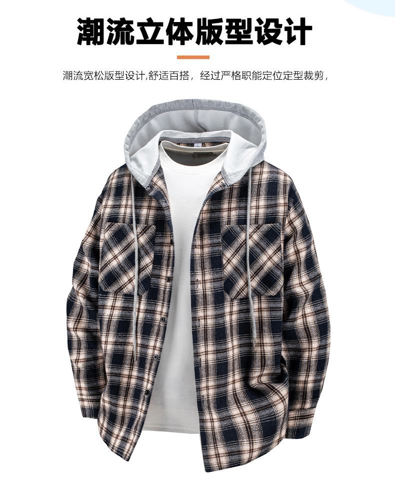 국경 간 대외 무역 남자 긴팔 체크 후드 셔츠 미국 레트로 트렌디 브랜드 루즈 캐주얼 플러스 사이즈 셔츠 재킷