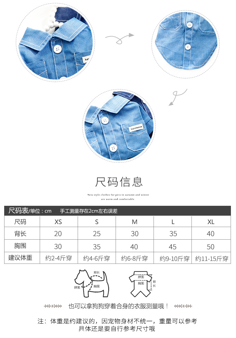 강아지 옷 봄 여름 얇은 고양이 바다 소금 데님 패션 데님 셔츠 작은 개 테디 애완 동물 6795스토어 가기
