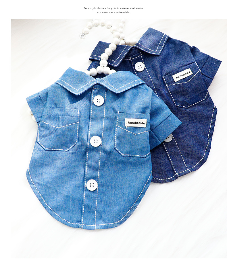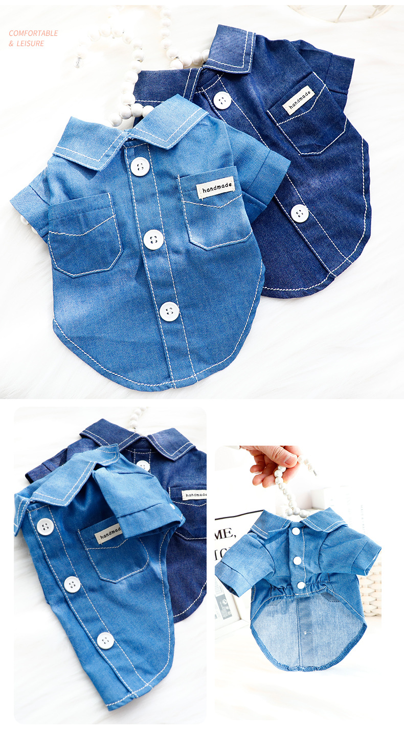 강아지 옷 봄 여름 얇은 고양이 바다 소금 데님 패션 데님 셔츠 작은 개 테디 애완 동물 6795
