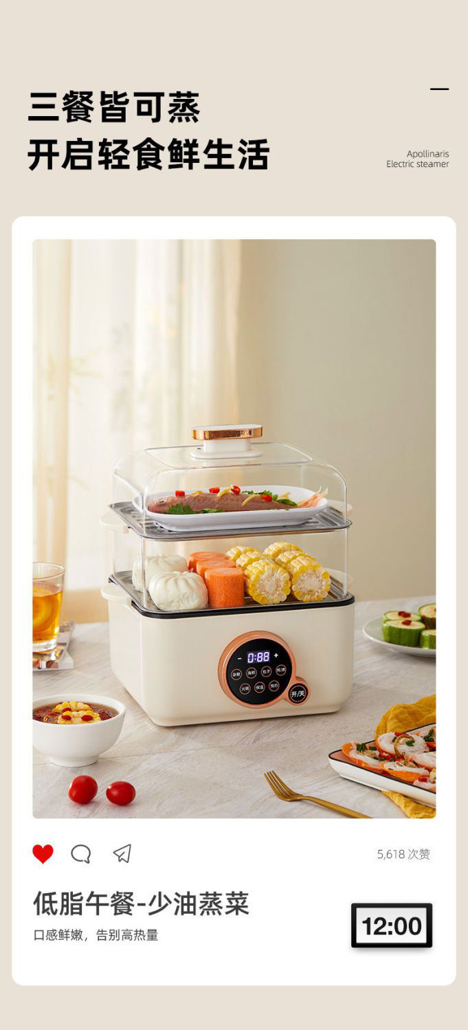 네론다 전기 증기선 지능형 전기 밥솥 다기능 자동 전원 끄기 안티 드라이 요리 계란 밥솥 통합 전기 증기선스토어 가기