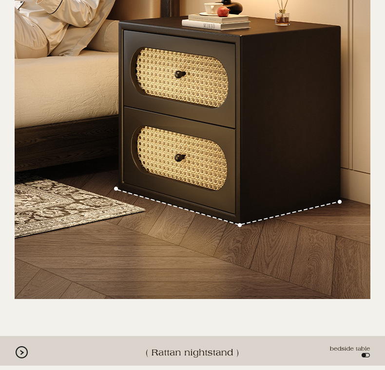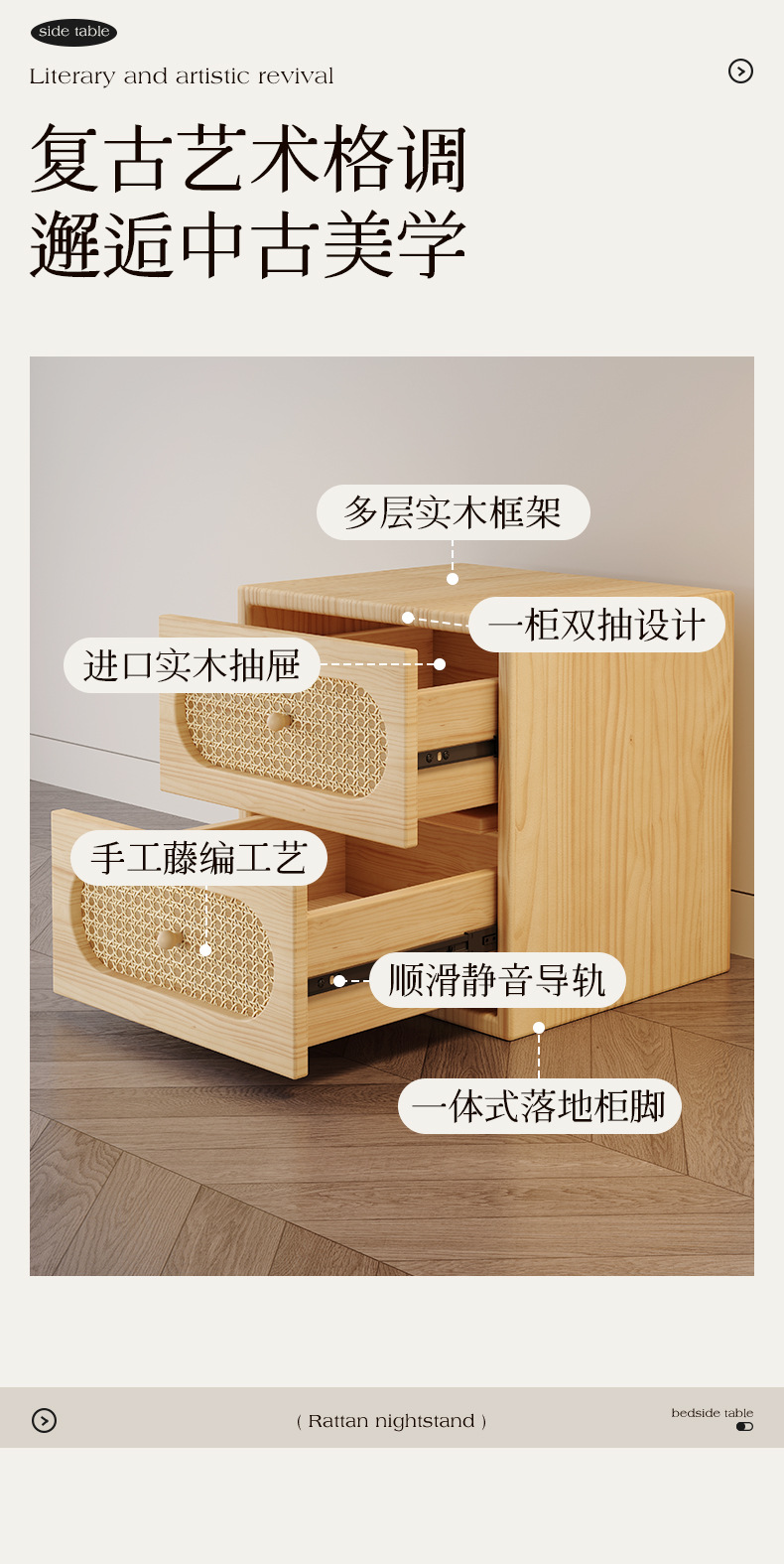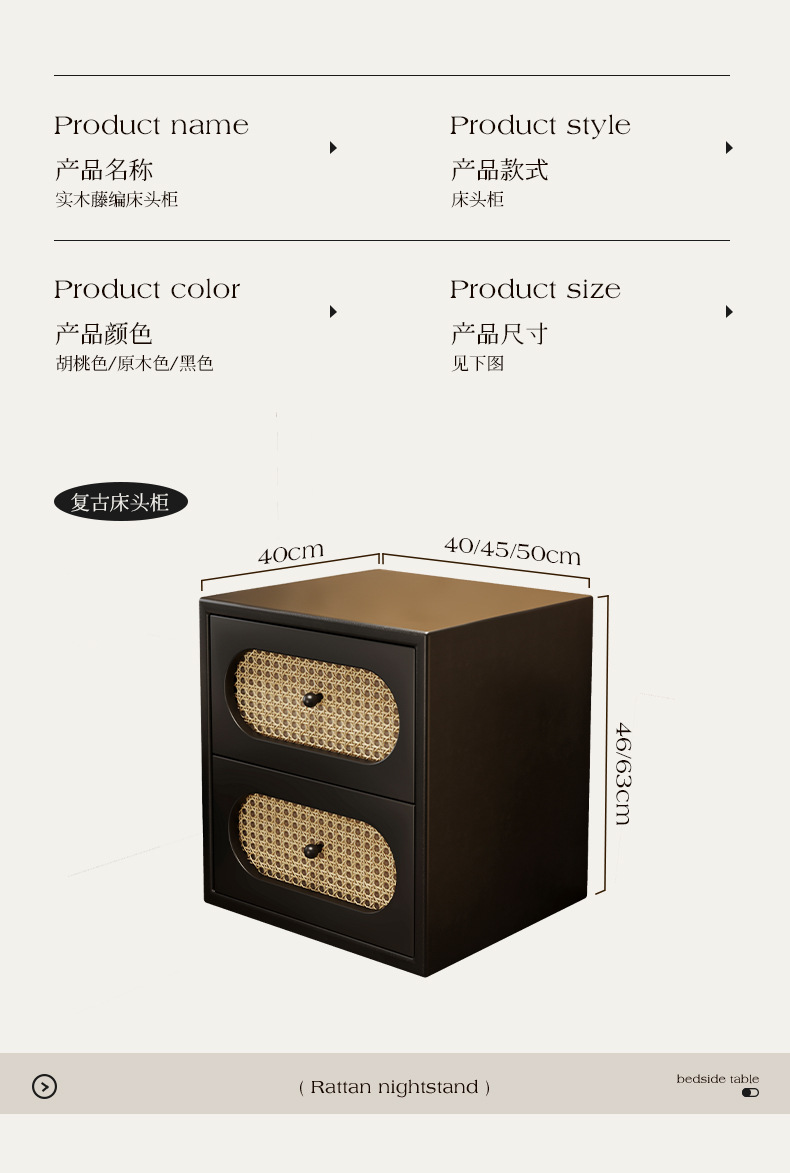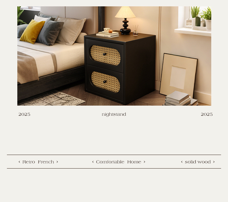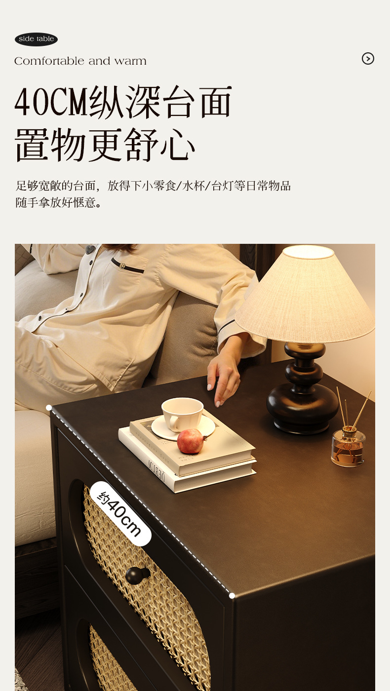 레트로 등나무 침대 옆 테이블, 중세 스타일 검은 색 작은 집 침실 2025 새로운 스타일의 가벼운 럭셔리 하이 엔드 침대 옆 테이블스토어 가기