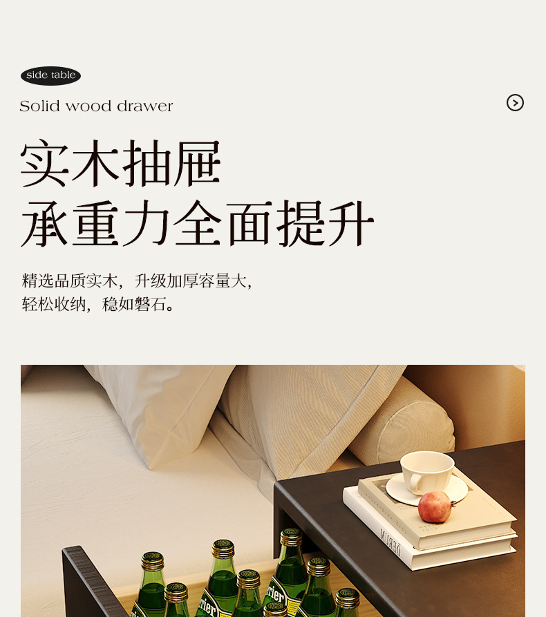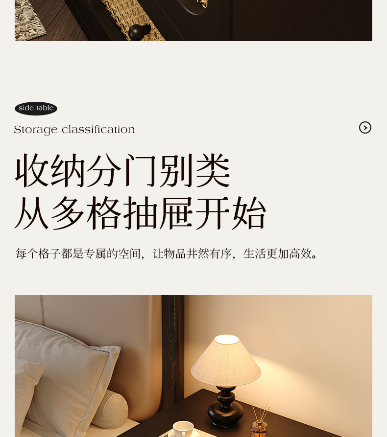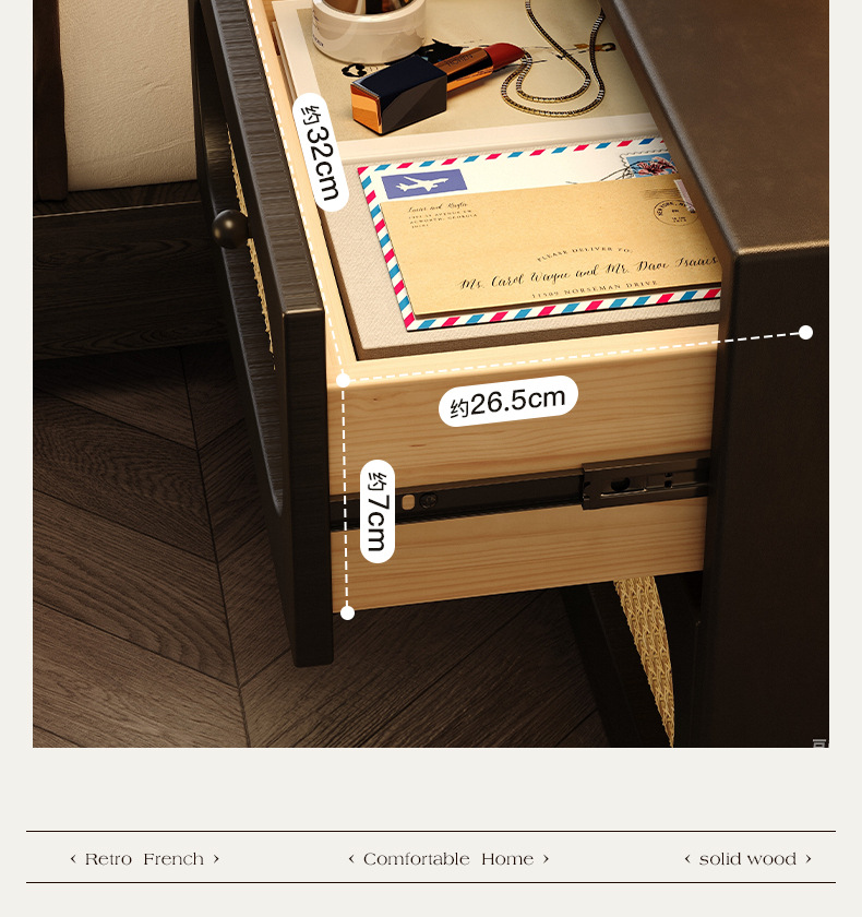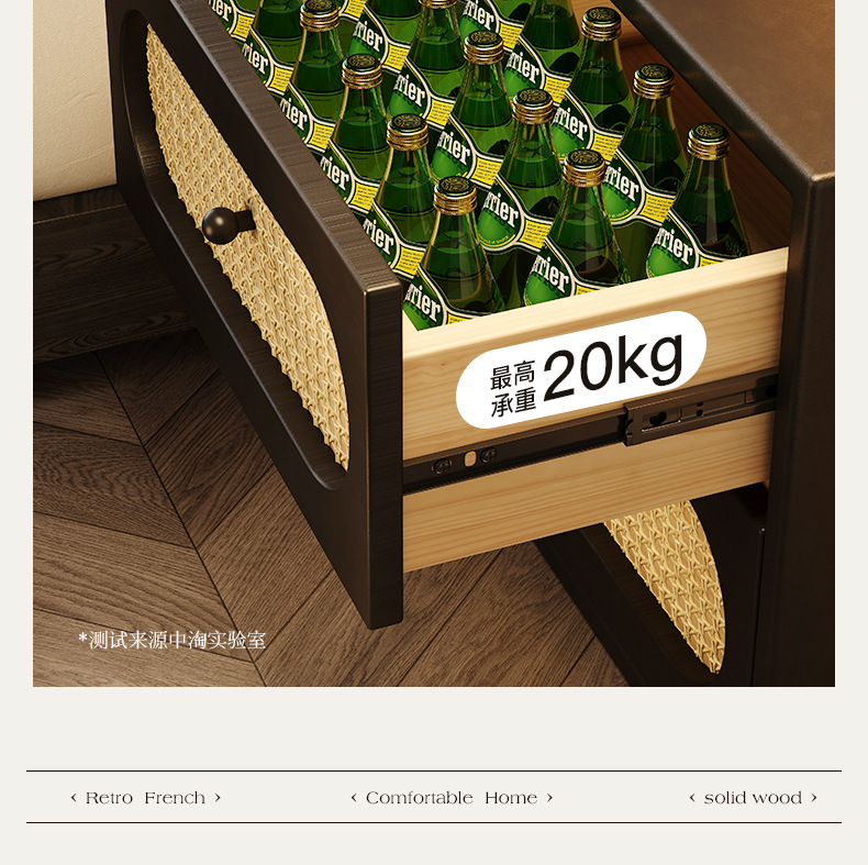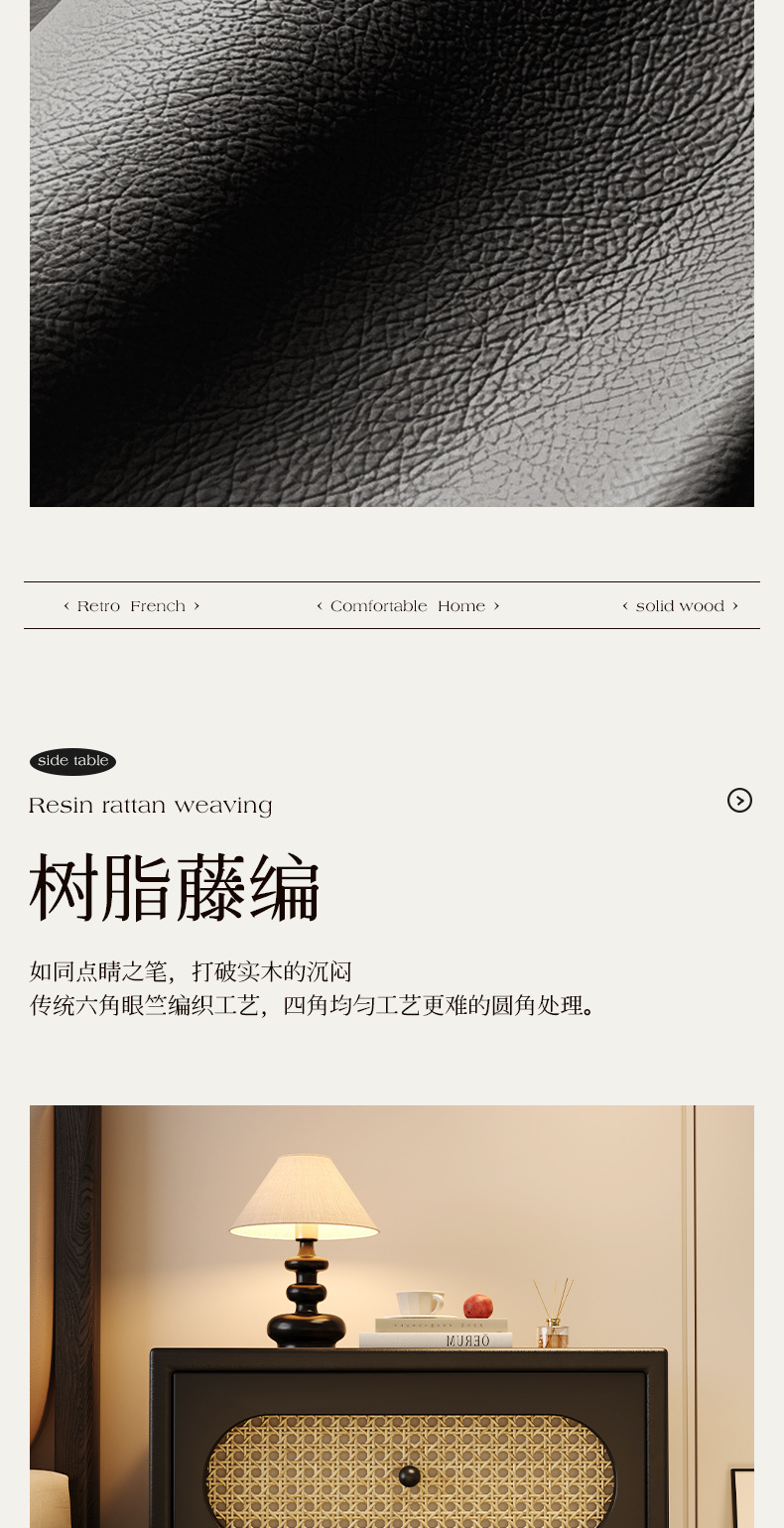 레트로 등나무 침대 옆 테이블, 중세 스타일 검은 색 작은 집 침실 2025 새로운 스타일의 가벼운 럭셔리 하이 엔드 침대 옆 테이블스토어 가기