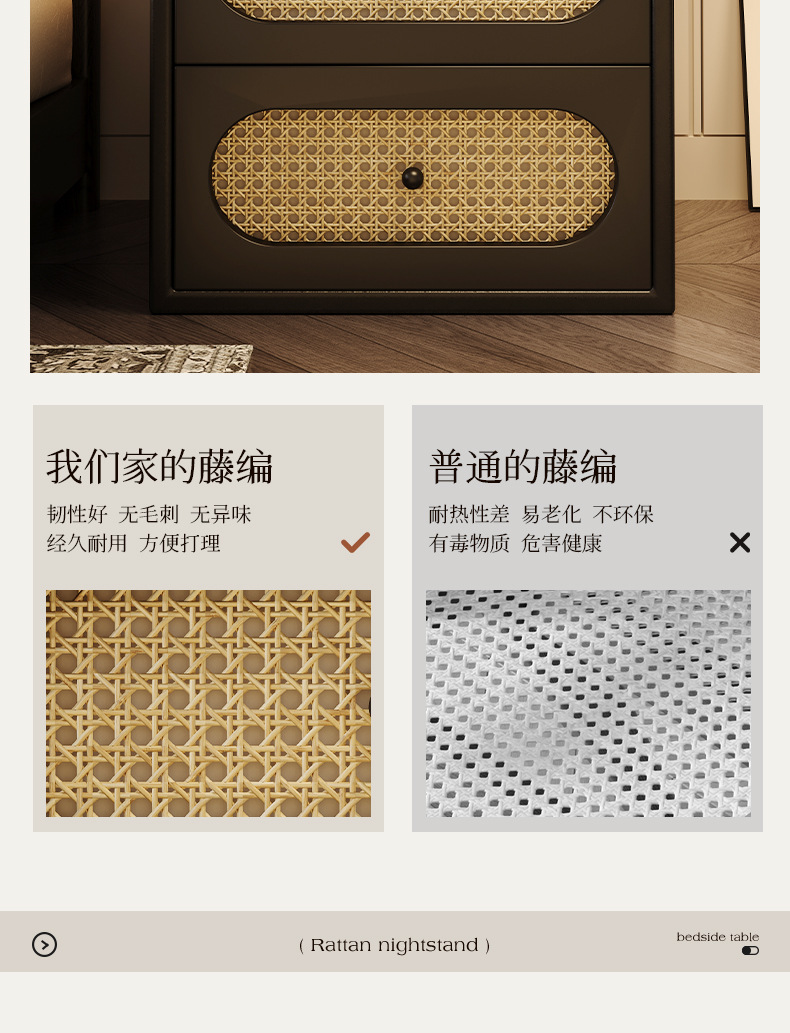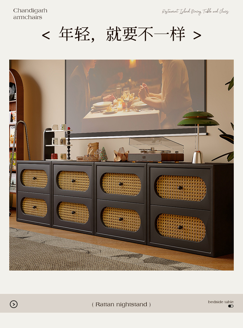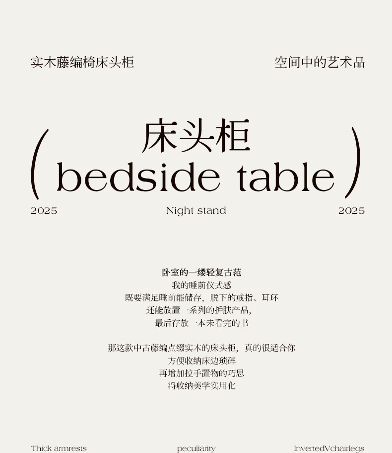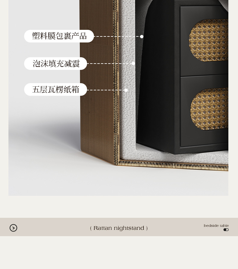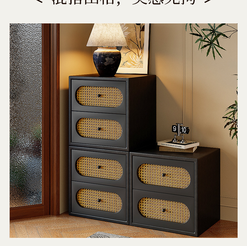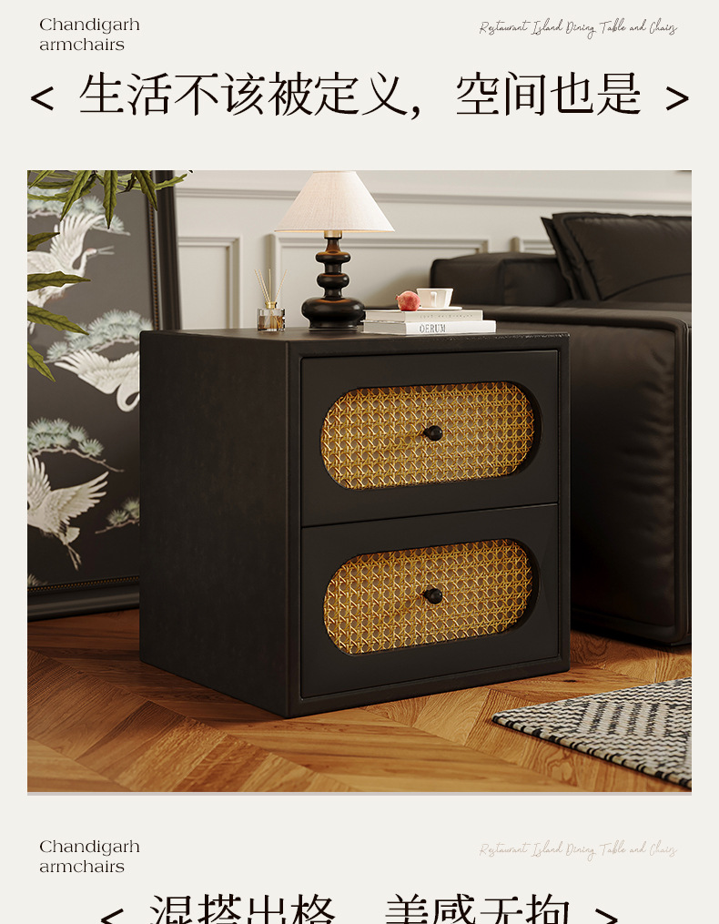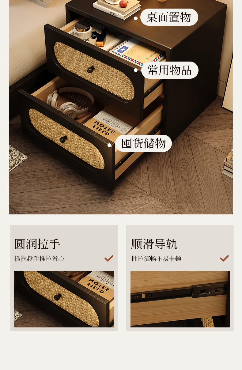复古藤编床头柜中古风黑色小型家用卧室2025新款轻奢高级感床边柜