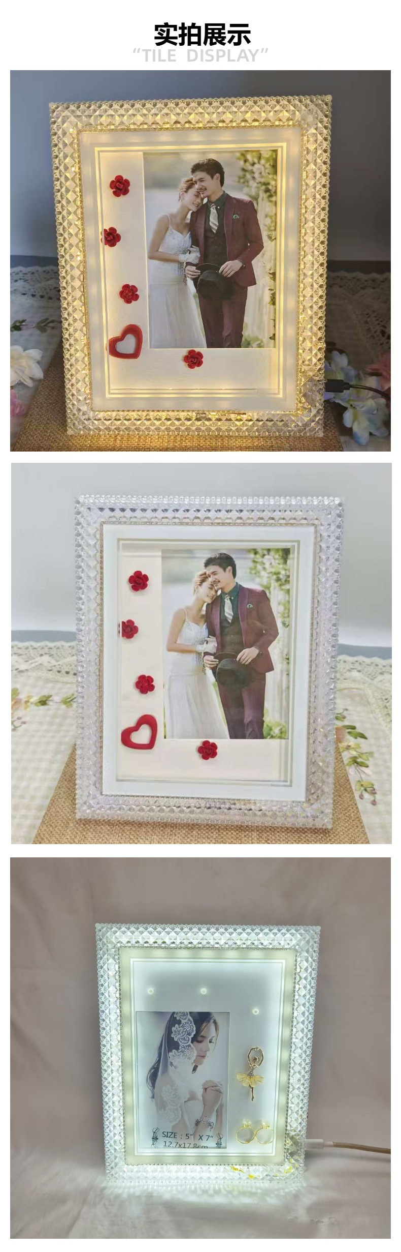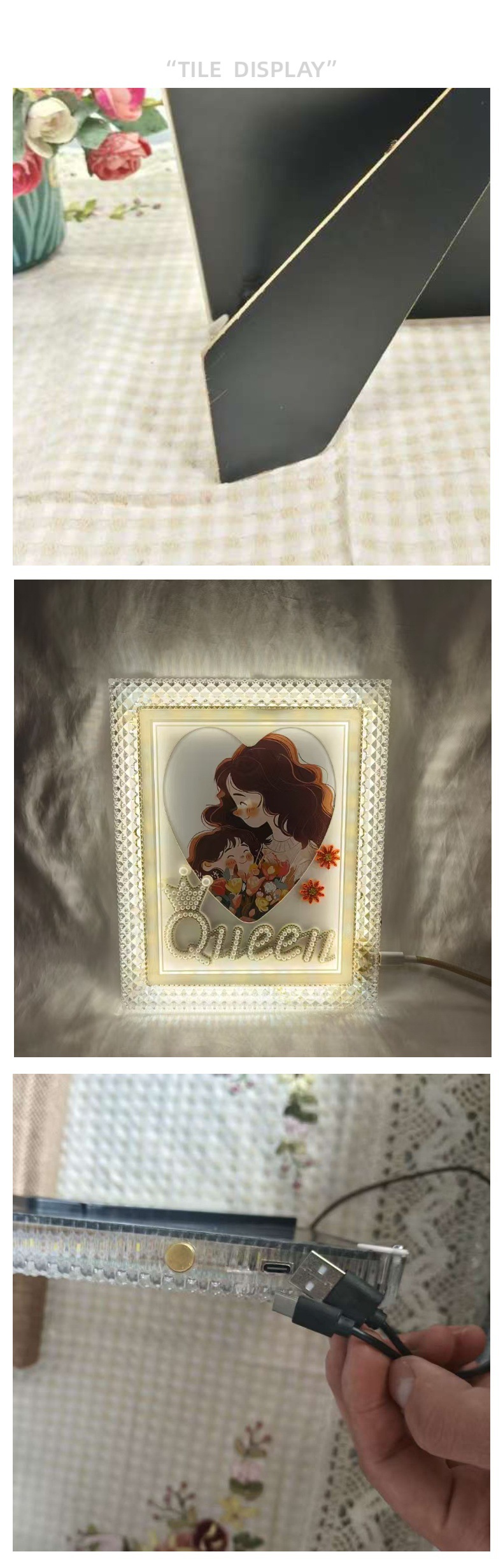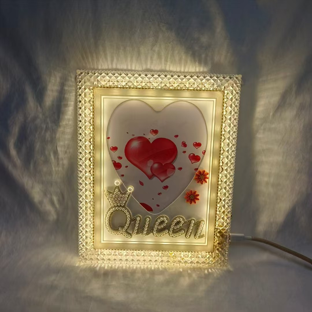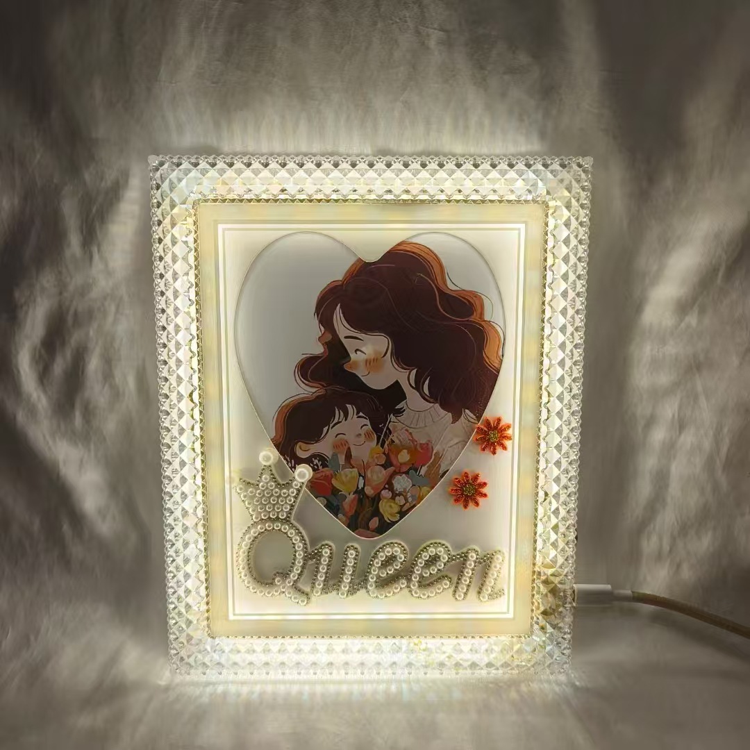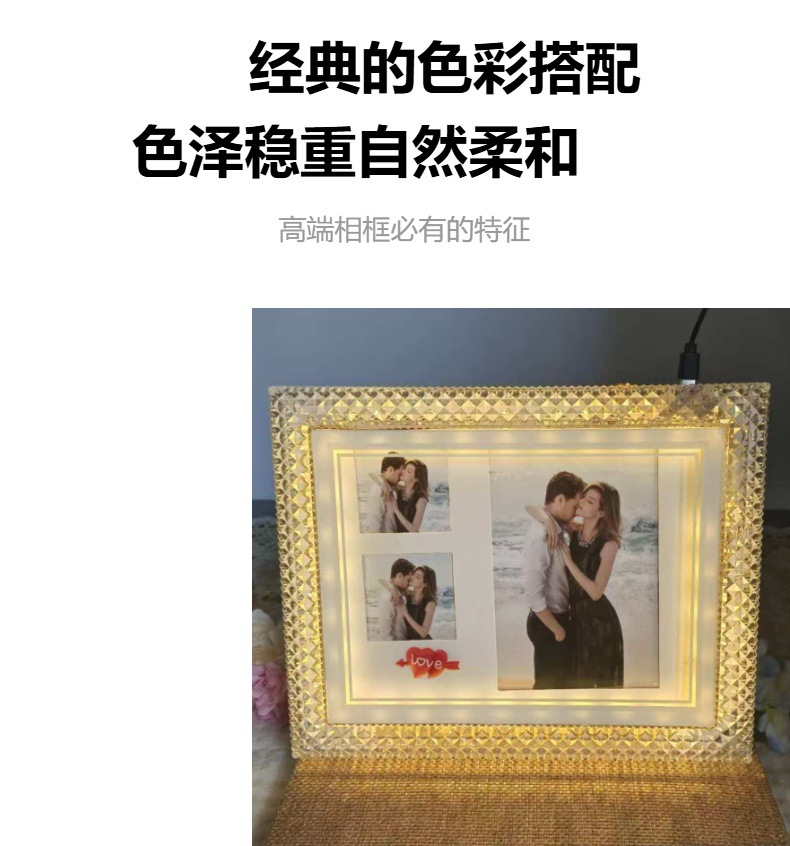 사진 프레임 테이블, 고급형, 조명 포함, LED 침대 옆, 창의적인 조명, 고급 플러그인, 데스크탑 DIY, 심플한 분위기, 크로스보더스토어 가기